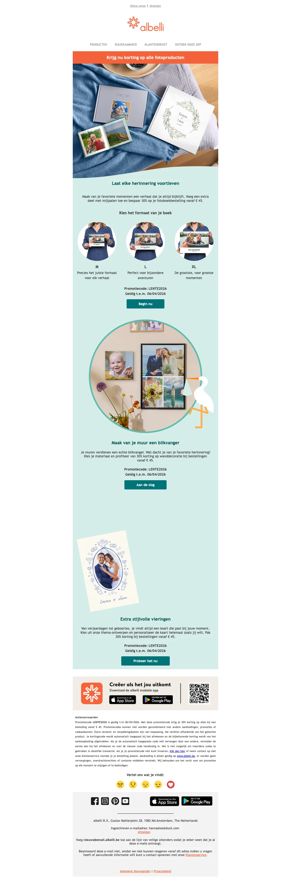 | LENTE2026 | Albelli 30% korting op fotoproducten vanaf €45 — lenteactie |