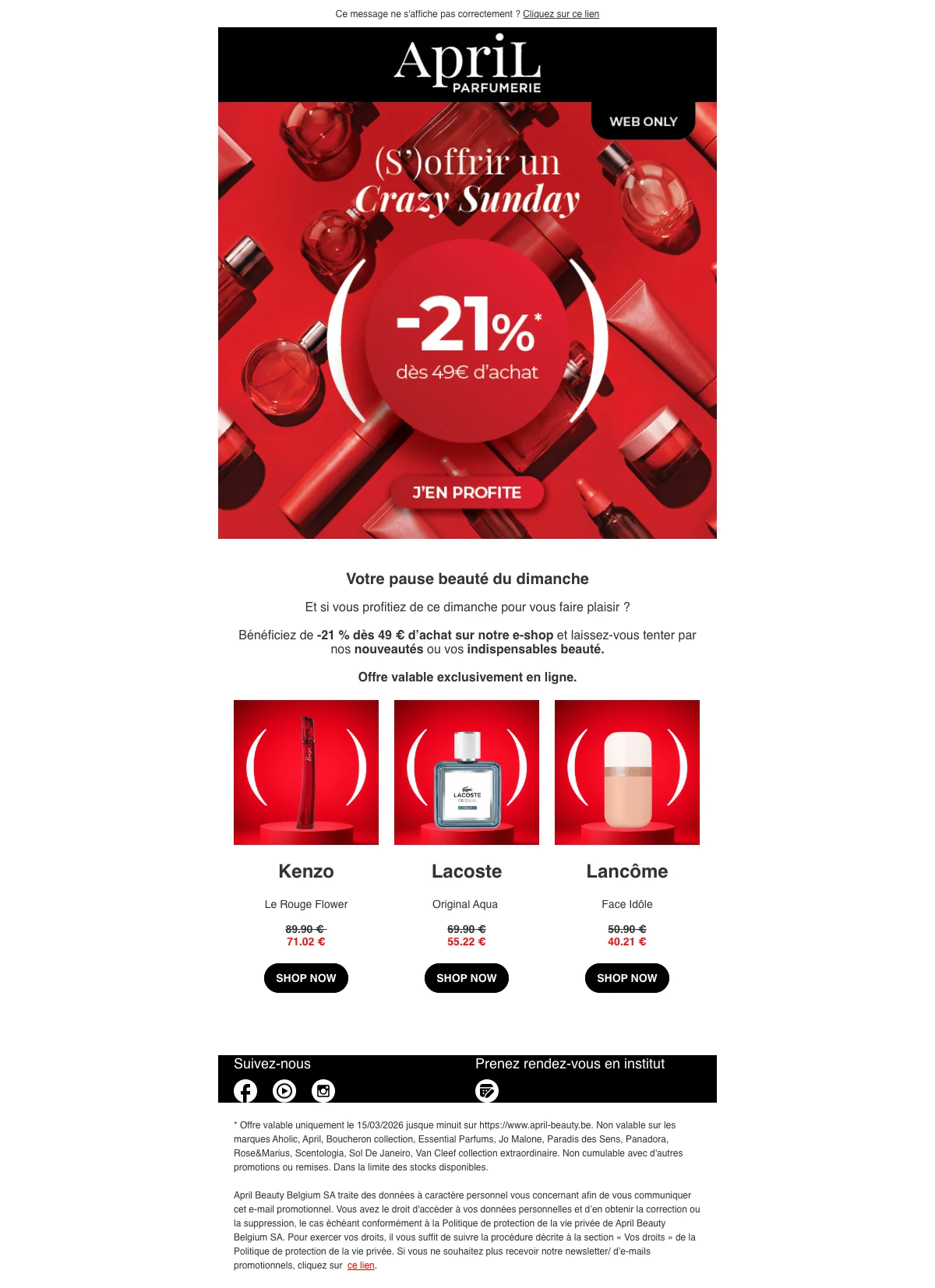 April Beauty avonddeal 21% korting vanaf €49 op e-shop