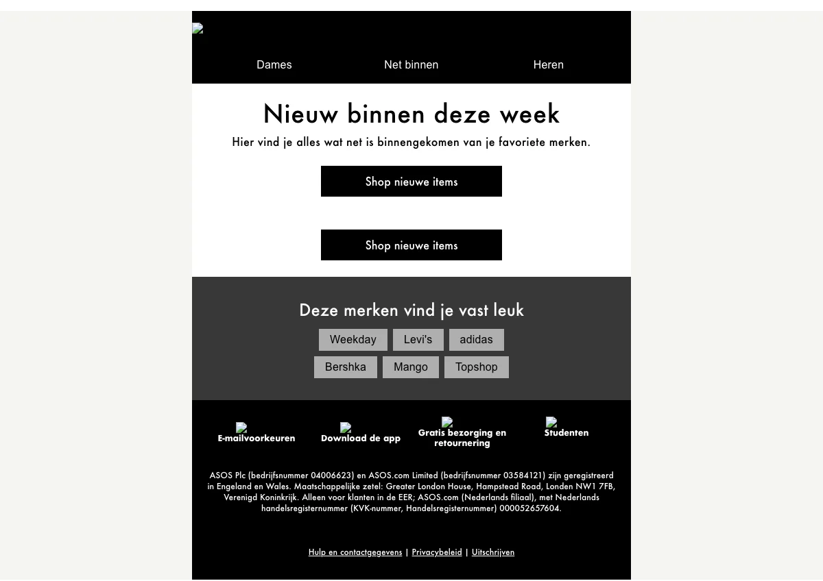 Wie ASOS zegt, zegt merkkledij in 1 adem. Kledingstukken van hoge kwaliteit en ontworpen door modekenners met smaak. Het aantal topmerken dat je in de webshop vindt is te talrijk om op te noemen, maar hier zijn alvast enkele voorbeelden: