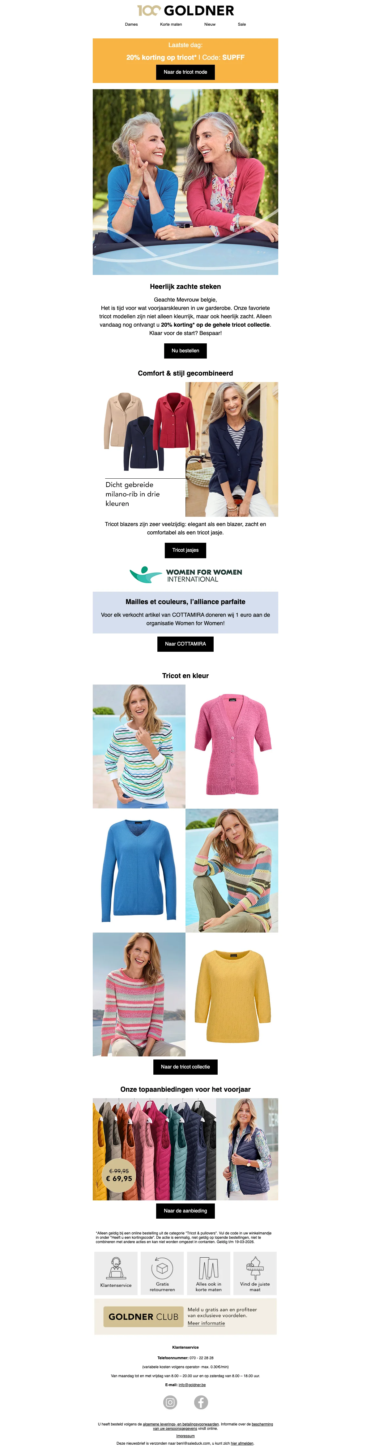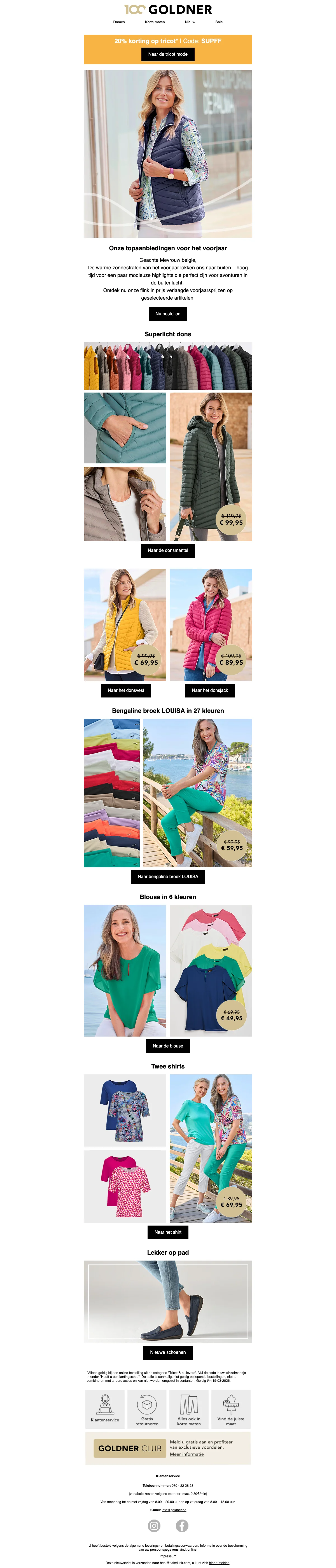 Profiteer nu van 10% korting op de nieuwste modecollectie bij GOLDNER. Gebruik de kortingscode bij het afrekenen en bespaar direct. Mis deze kans niet en vernieuw je garderobe vandaag nog!