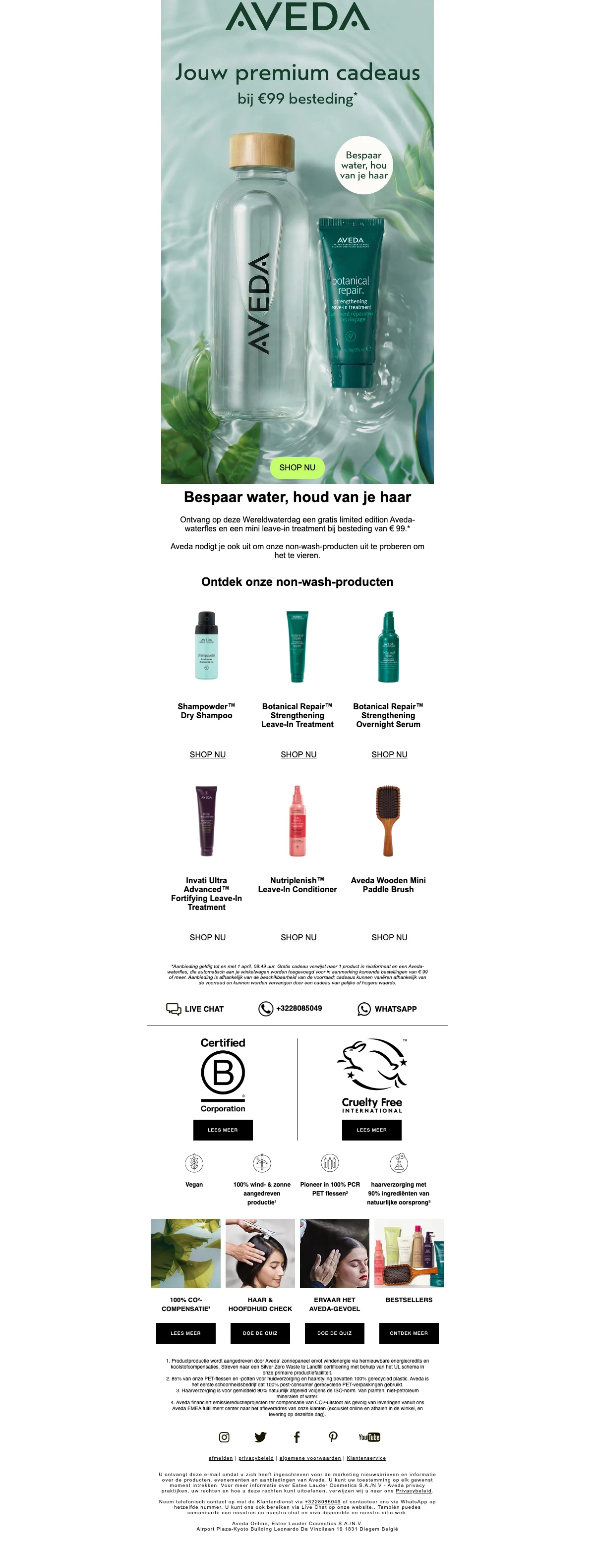 Profiteer van 25% korting op je favoriete Aveda shampoos en conditioners. Upgrade je haarverzorgingsroutine met deze geweldige aanbieding. Geniet ook van gratis reisformaten bij bestellingen vanaf € 99.