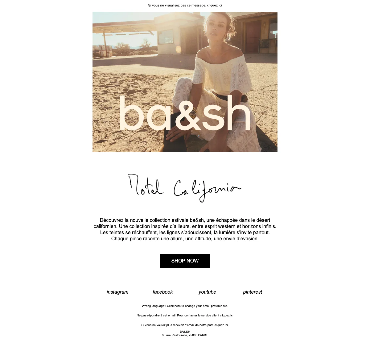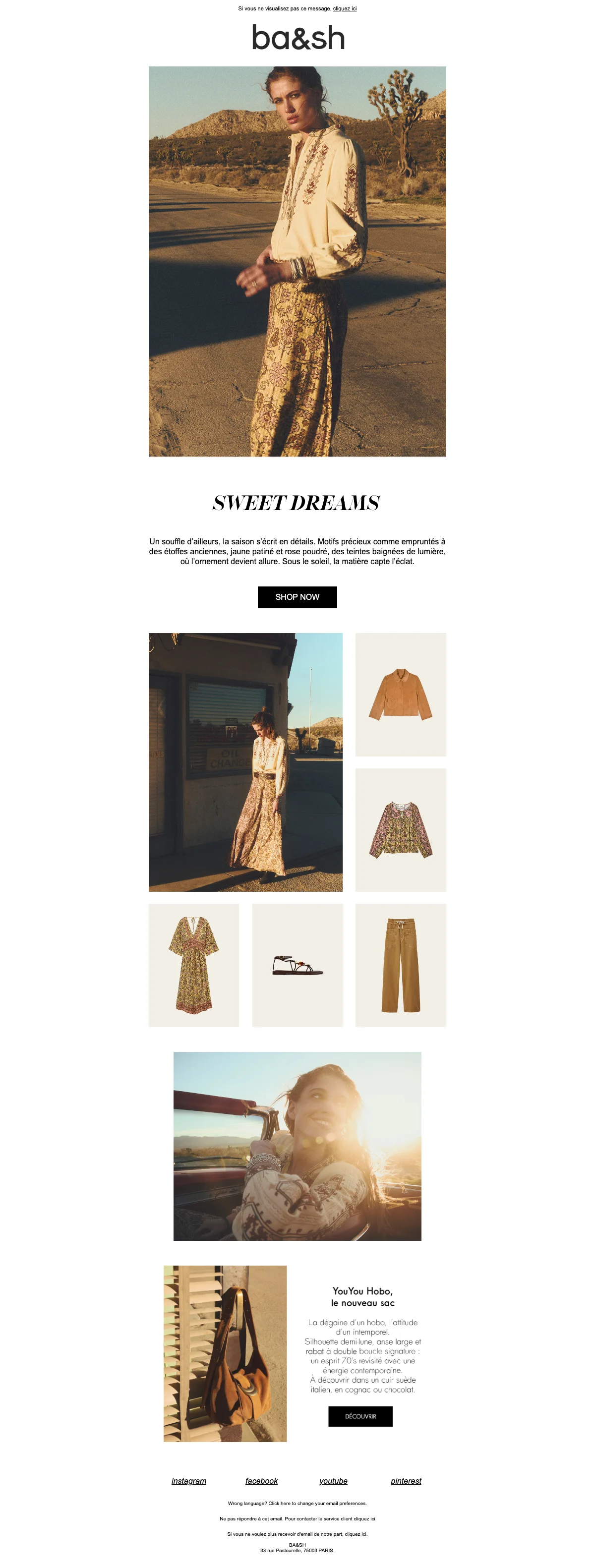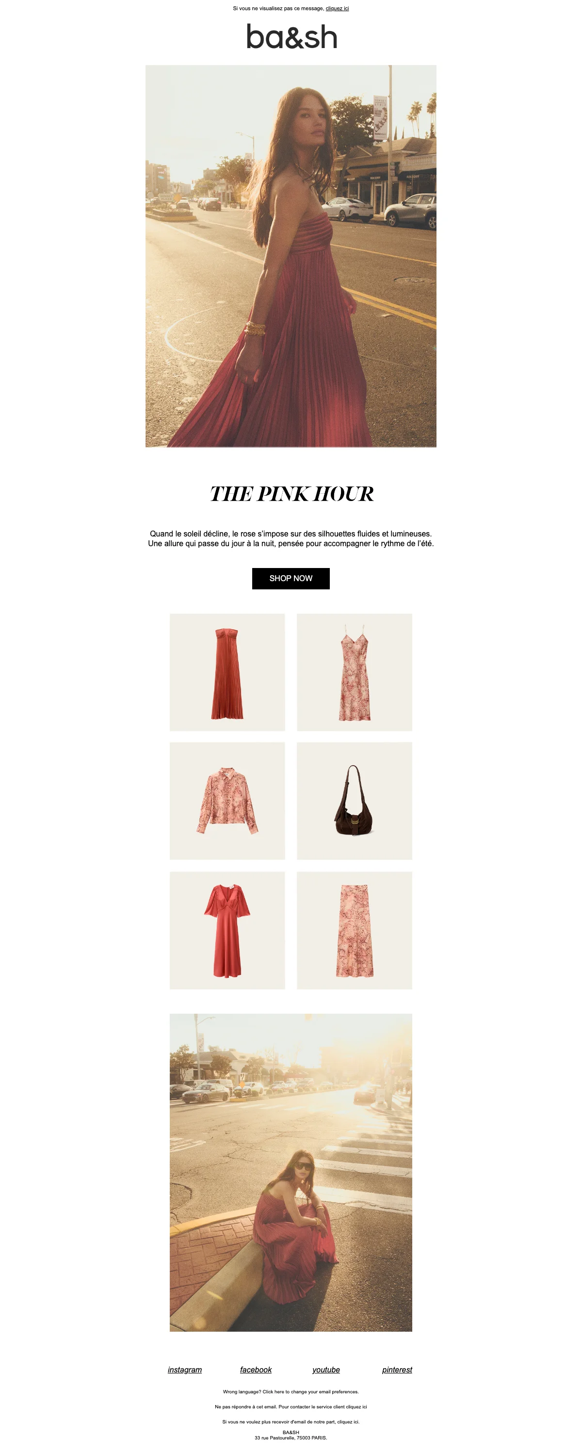 Benieuwd naar de nieuwste trends en stijlen? Laat je inspireren door de ba&sh nieuwe collectie. Van prachtige prints tot tijdloze basics, ba&sh heeft voor ieder wat wils. Laat je verrassen door de unieke ontwerpen en geef je kledingkast een update met de nieuwste must-haves. Onze nieuwste collectie is samengesteld met oog voor detail en modebewustzijn, zodat jij altijd de laatste trends kunt omarmen. Ontdek onze nieuwste creaties en wees klaar om jouw persoonlijke stijl naar een hoger niveau te tillen met ba&sh.