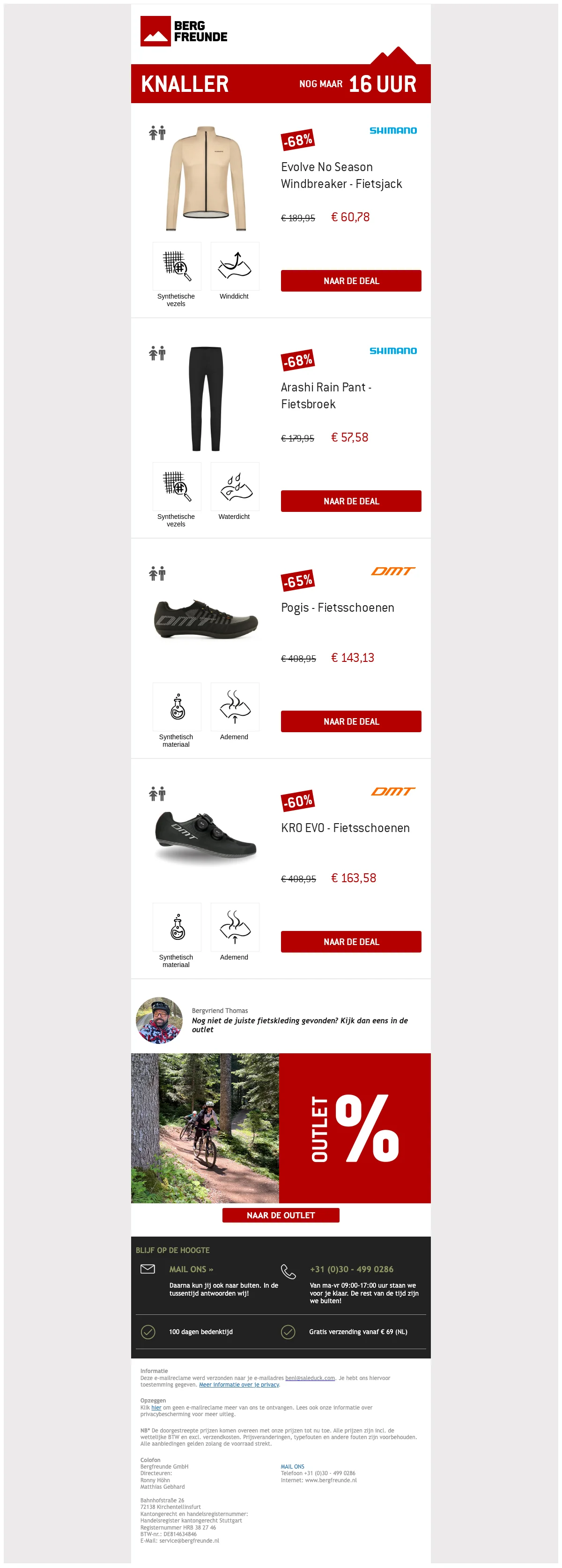 De eerste korting is snel verdiend bij Bergfreunde. Het enige wat je hoeft te doen is je in te schrijven op de nieuwsbrief. Dan word je niet alleen op de hoogte gehouden van de beste aanbiedingen, maar krijg je gelijk een code waarmee je €5 korting krijgt op je volgende bestelling.