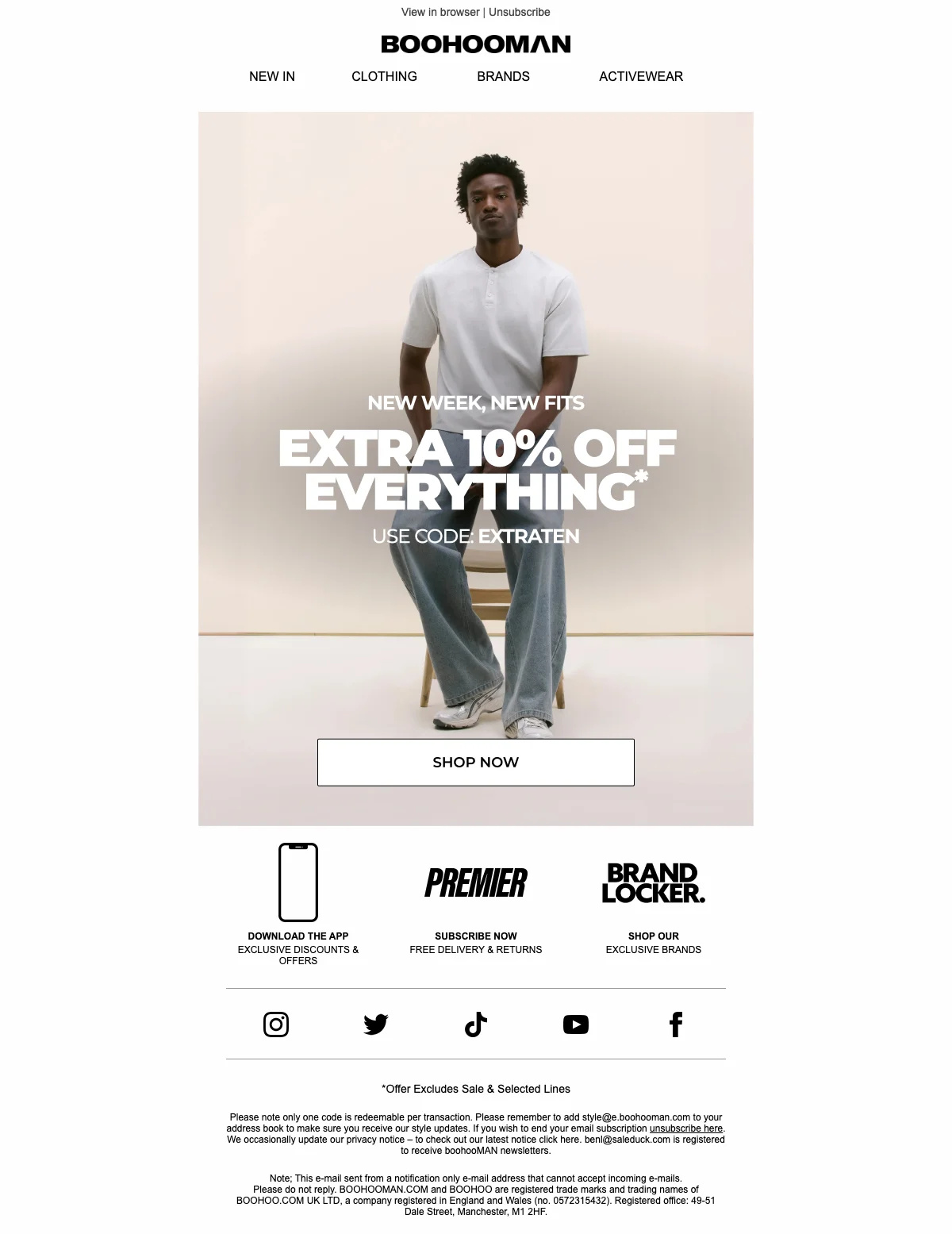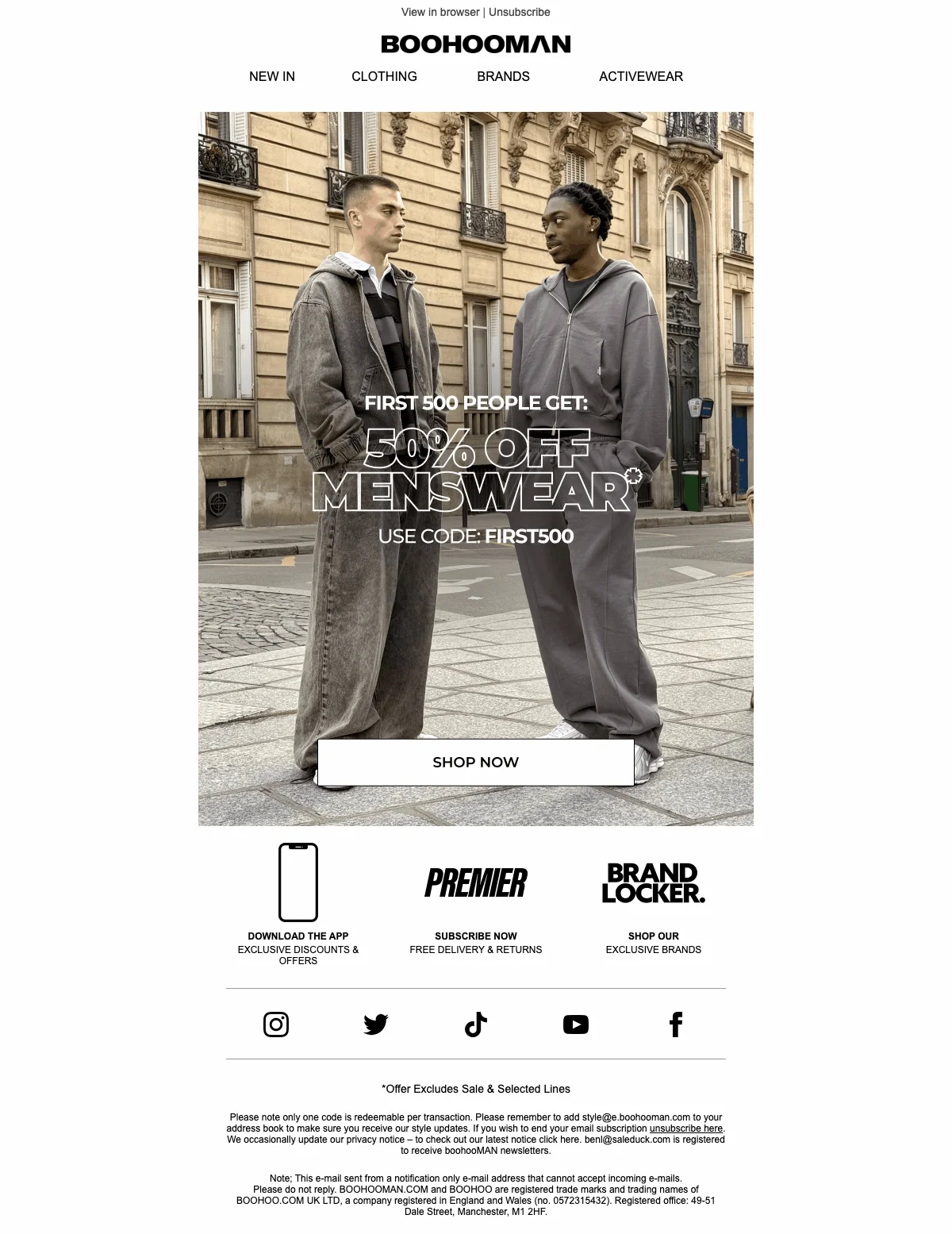 BoohooMAN kortingscode 12% extra korting op alles, bespaar direct