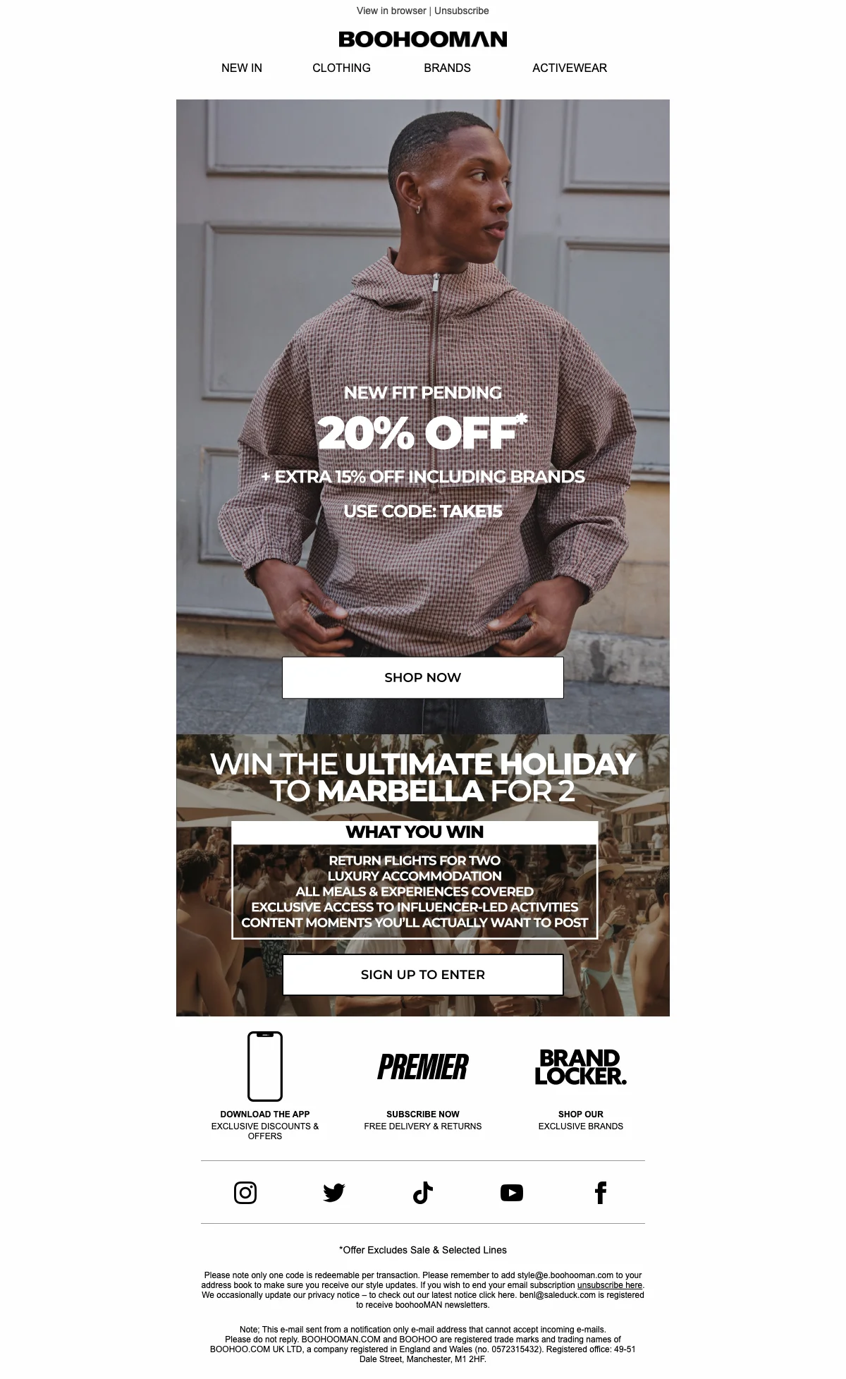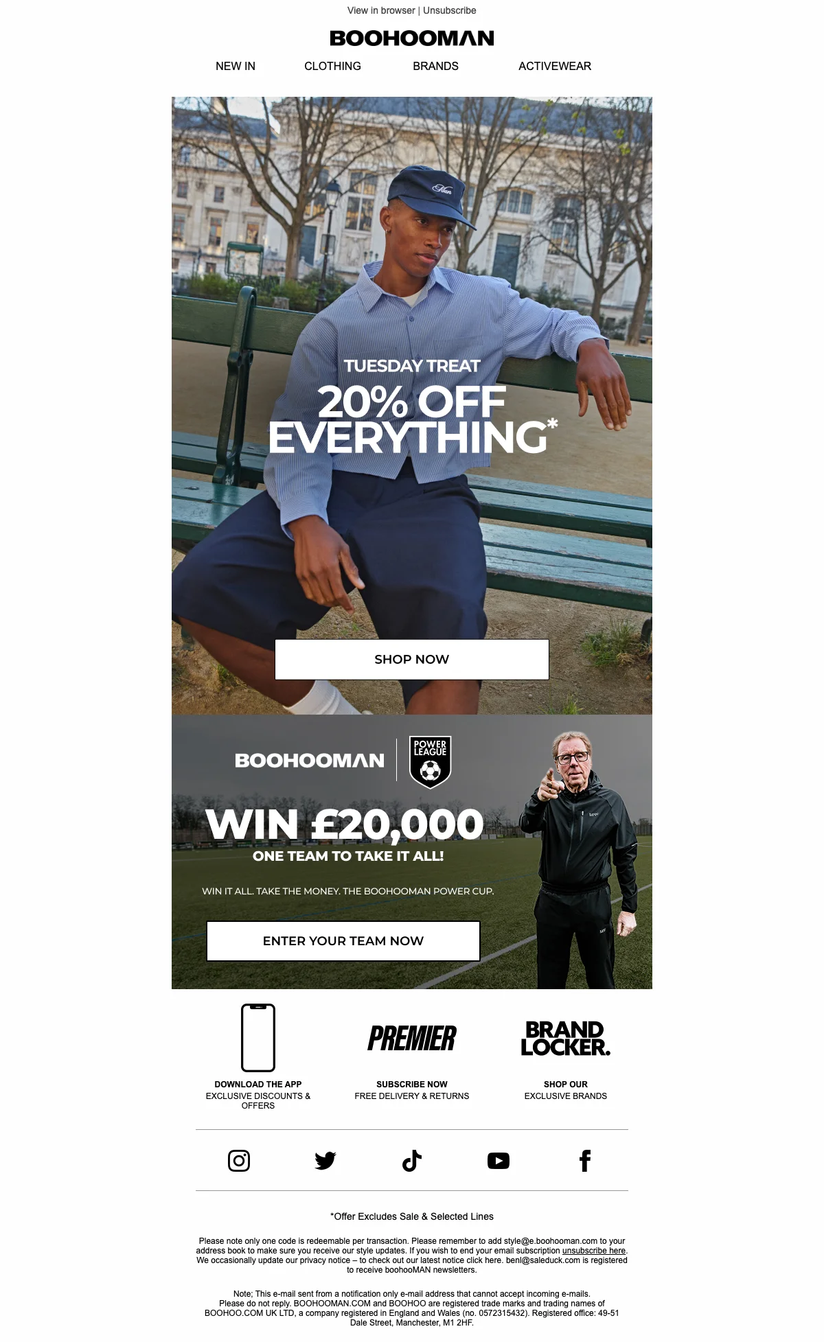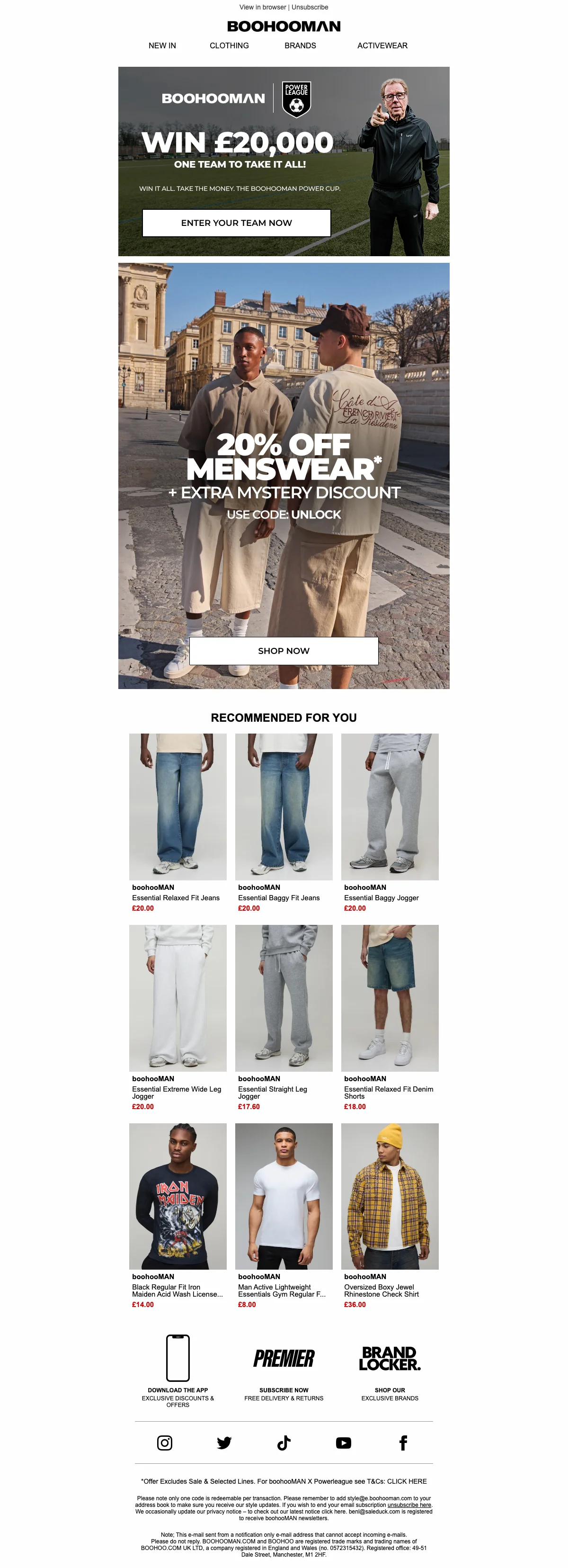 BoohooMAN lenteaanbieding: extra 10% app-korting bovenop 20% herenkleding