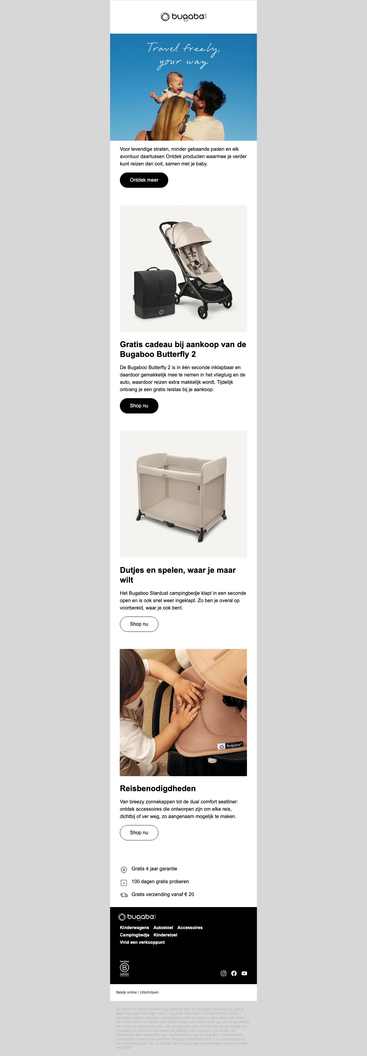 Ontdek de Bugaboo bundels en maak je kinderwagen compleet met reis essentials voor baby's en peuters. Profiteer van een aanzienlijke besparing en krijg alles wat je nodig hebt in één handig pakket. Perfect voor ouders die altijd onderweg zijn en het comfort van hun kleintje willen garanderen.
