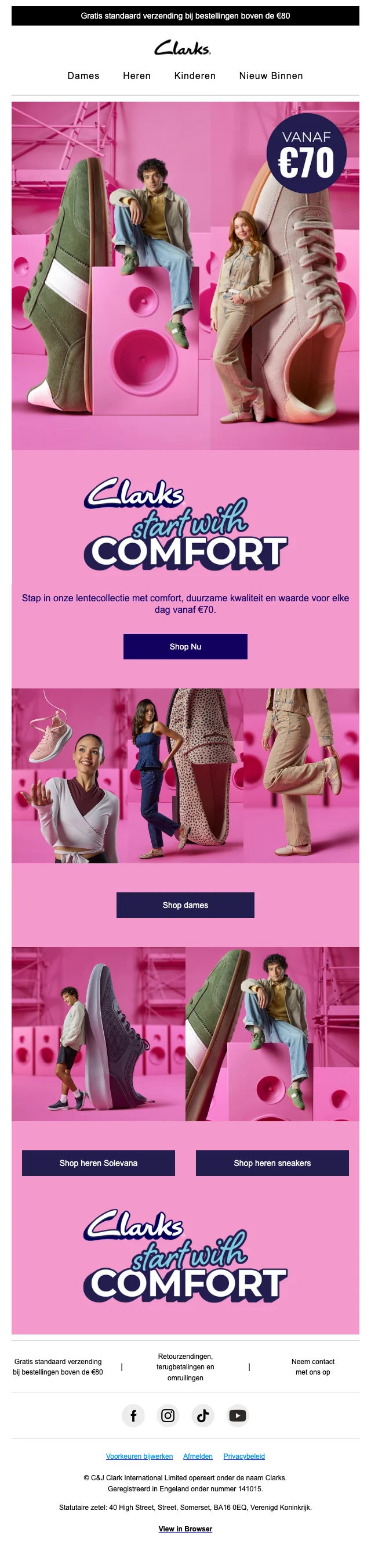 Beleef het comfort van de nieuwe Solevana schoenen van Clarks, perfect voor casual gebruik. En het beste van alles? Geniet van gratis verzending wanneer je aankopen boven de €59 doet. Dit is jouw kans om je schoenenkast een upgrade te geven zonder extra verzendkosten!