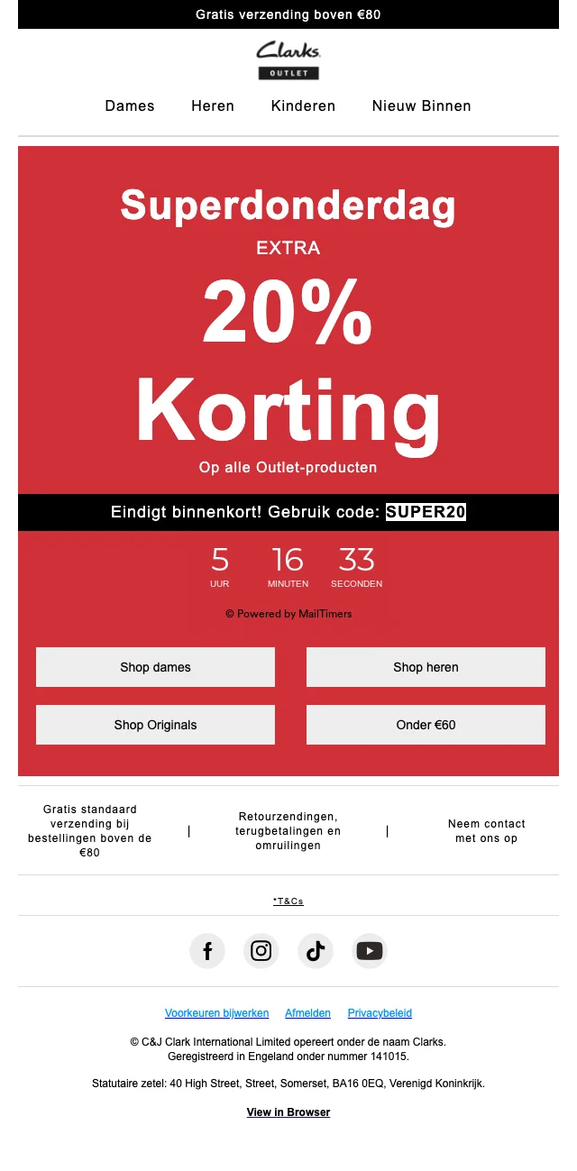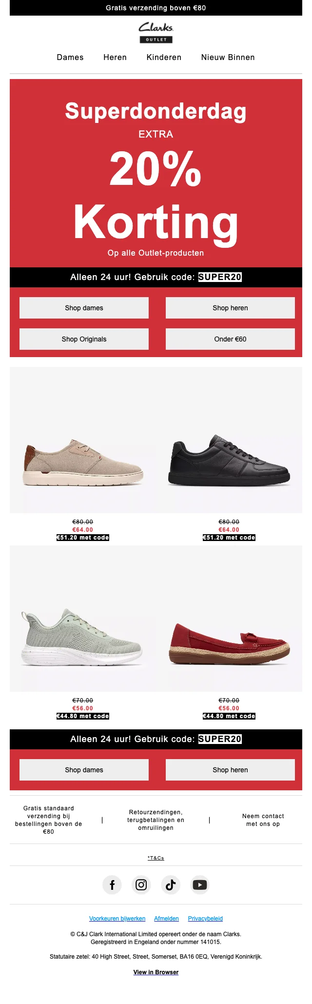 Clarks superdonderdag outlet 20% korting op alle items