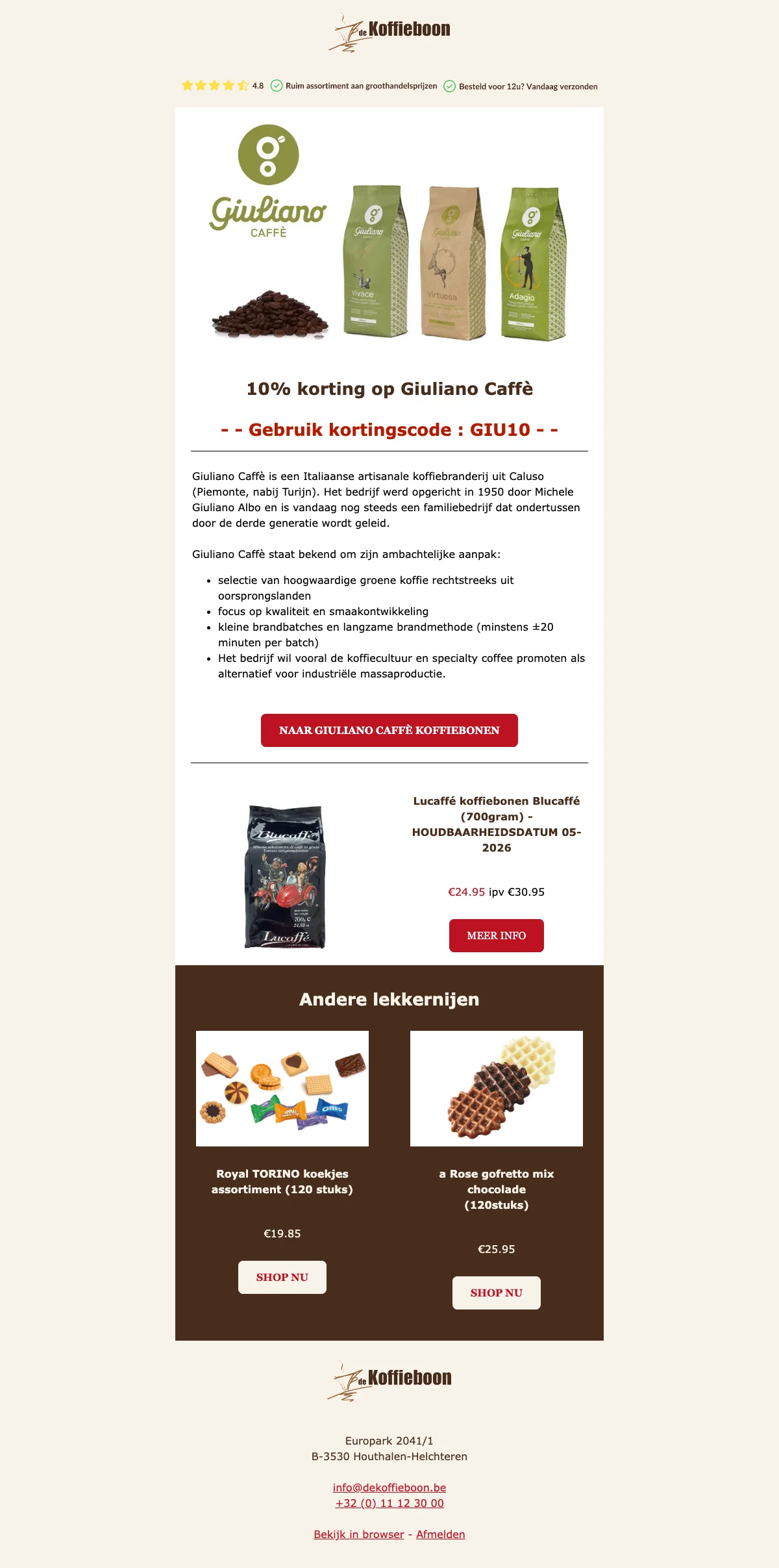 Ontvang 10% korting op geselecteerde koffiebonen en capsules; ideaal om nieuwe smaken voordelig te proberen. Korting toepasbaar bij afrekenen met een kortingscode, waardoor direct bespaard wordt op de aankoop.