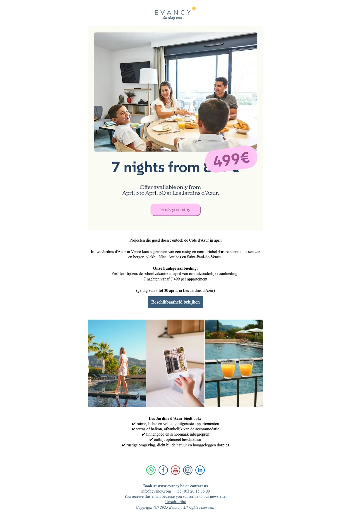 Wij controleren alle nieuwsbrieven van Evancy voor u om de beste aanbiedingen te vinden. Bekijk hier de meest recente nieuwsbrieven.