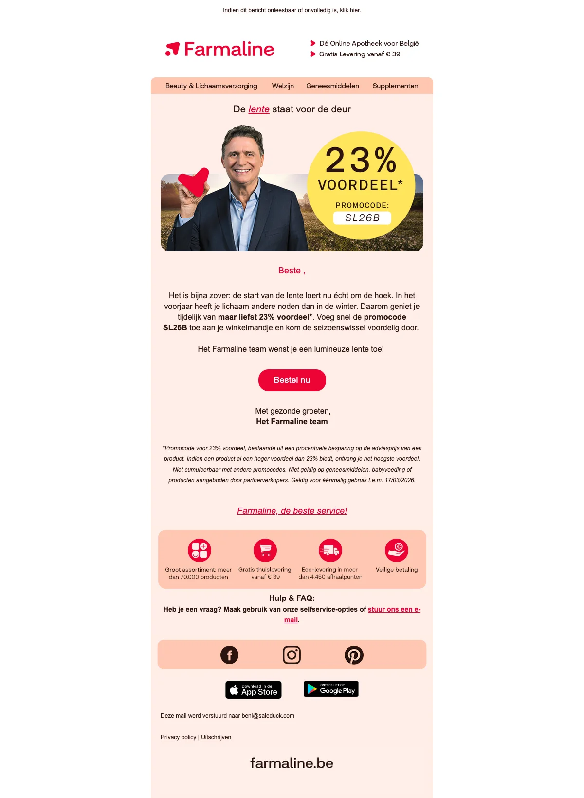 - Maart-april: Lente-opruiming vitamines wintervoorraad, introductieacties nieuwe zonproducten (15-25% korting)