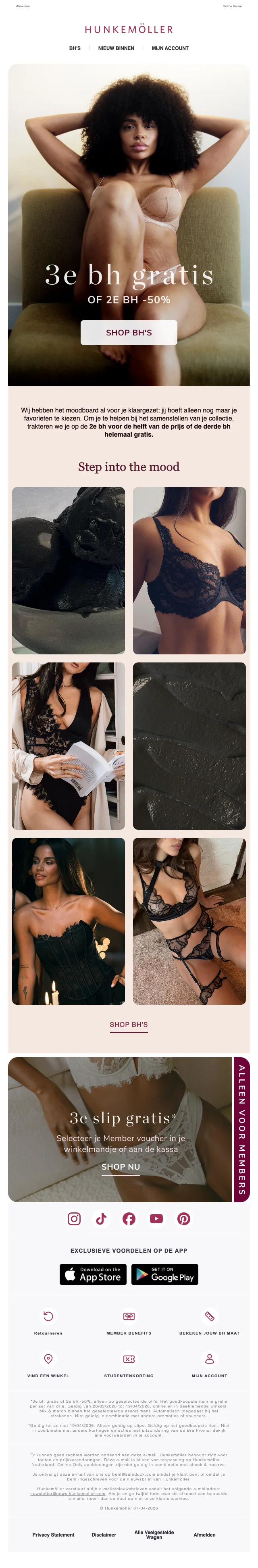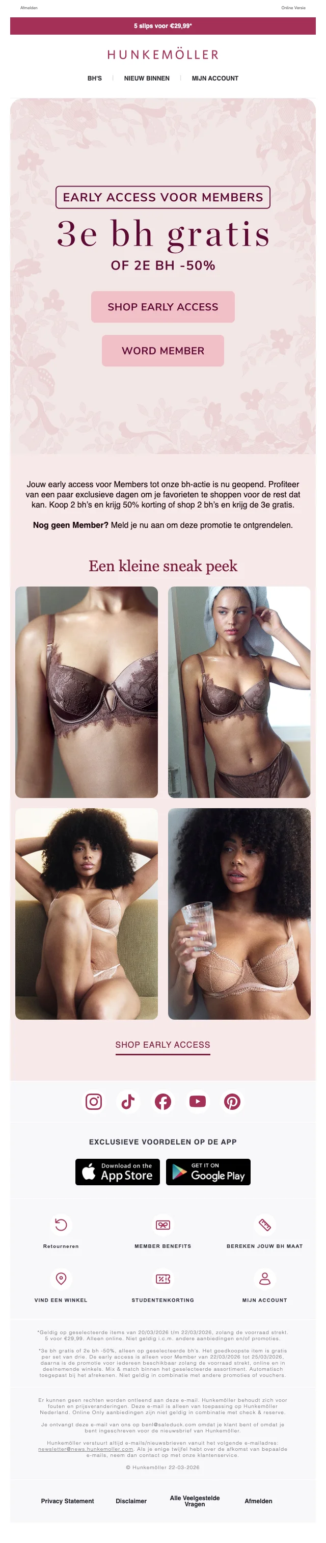 Hunkemöller beenmode 25% korting op beenmode BH's voor members