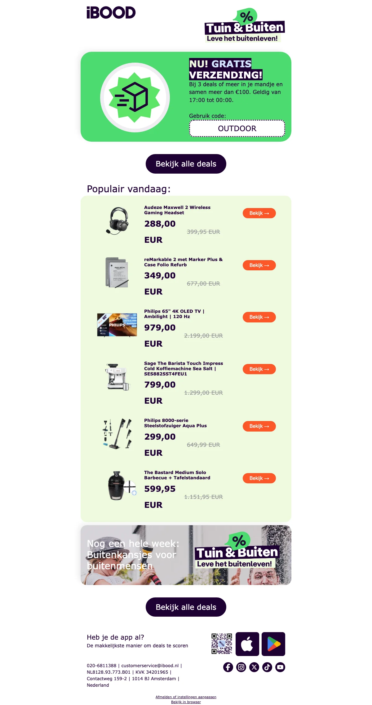 | OUTDOOR | IBOOD avonddeal gratis verzending bij 3 deals vanaf €100 |
