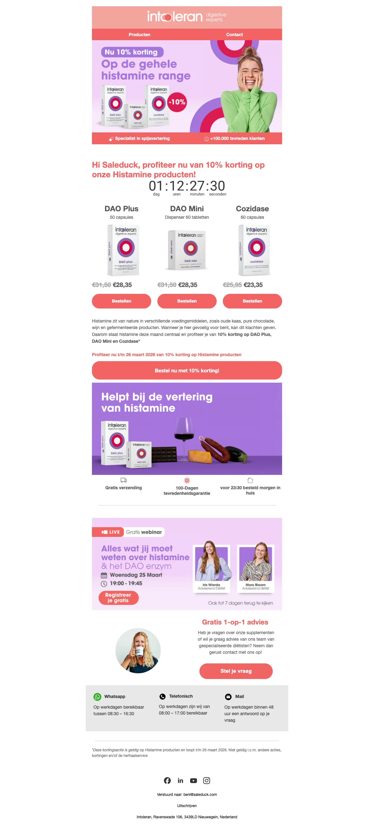 We monitoren Intoleran aanbiedingen continu via de officiële website, partnernetwerken en nieuwsbrieven van de webshop. Nieuwe acties worden automatisch en handmatig gecontroleerd op geldigheid.