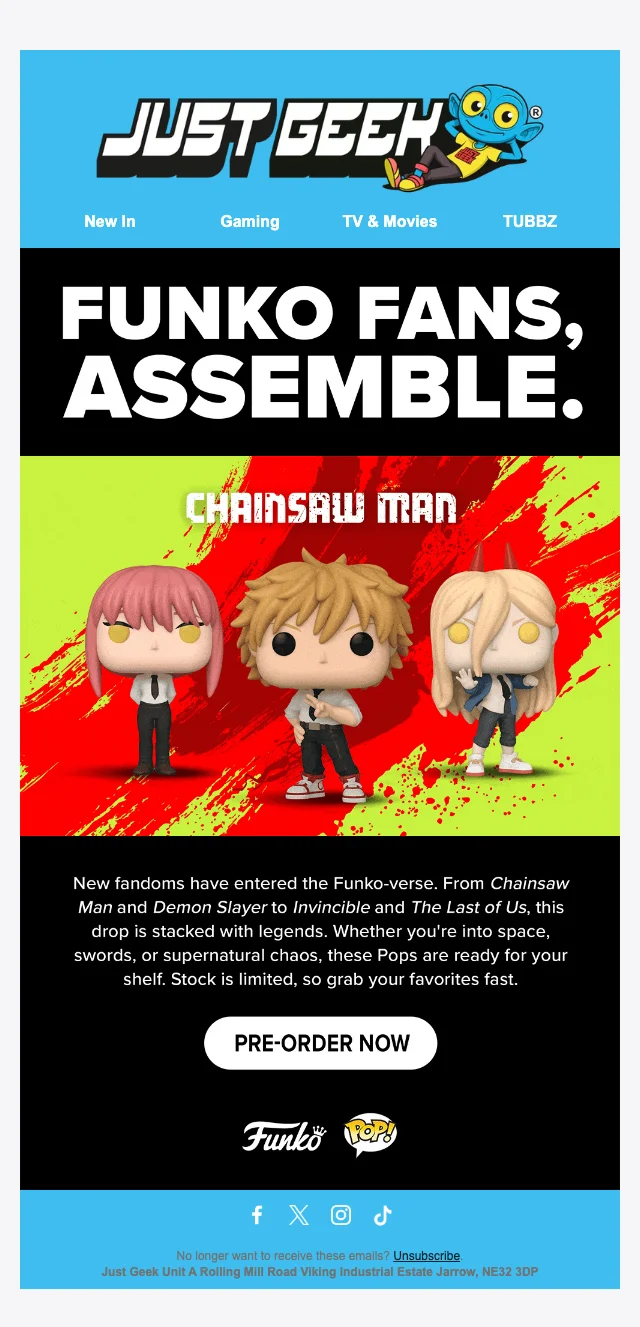 Ontdek de laatste aanwinsten in onze collectie van geeky merchandise bij JustGeek! Onze schattige TUBBZ en knuffels wachten op je, perfect voor iedere verzamelaar. Begin met het uitbreiden van jouw collectie vandaag nog, met prijzen die beginnen bij slechts €9,99!