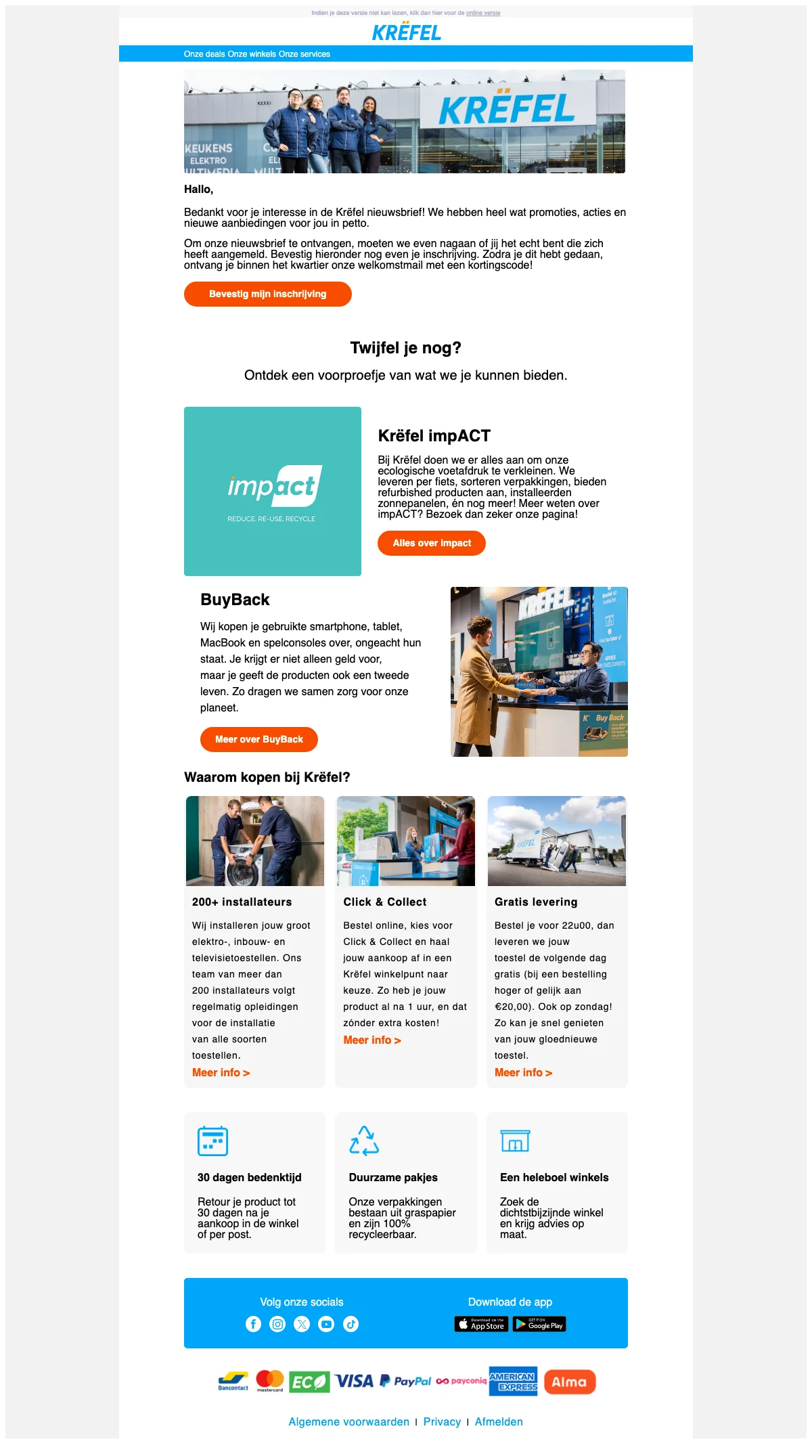 Erg tof aan de webshop is dat er vaak 'web exclusives' zijn. Dit zijn uitzonderlijke aanbiedingen die enkel online te vinden zijn en niet in een van de winkels. Deze promoties hebben vaak hoge kortingen, tot wel honderden euro's. Het loont dus echt online te gaan shoppen. Tijdens de Krëfel solden geniet je nog eens van extra hoge kortingen.