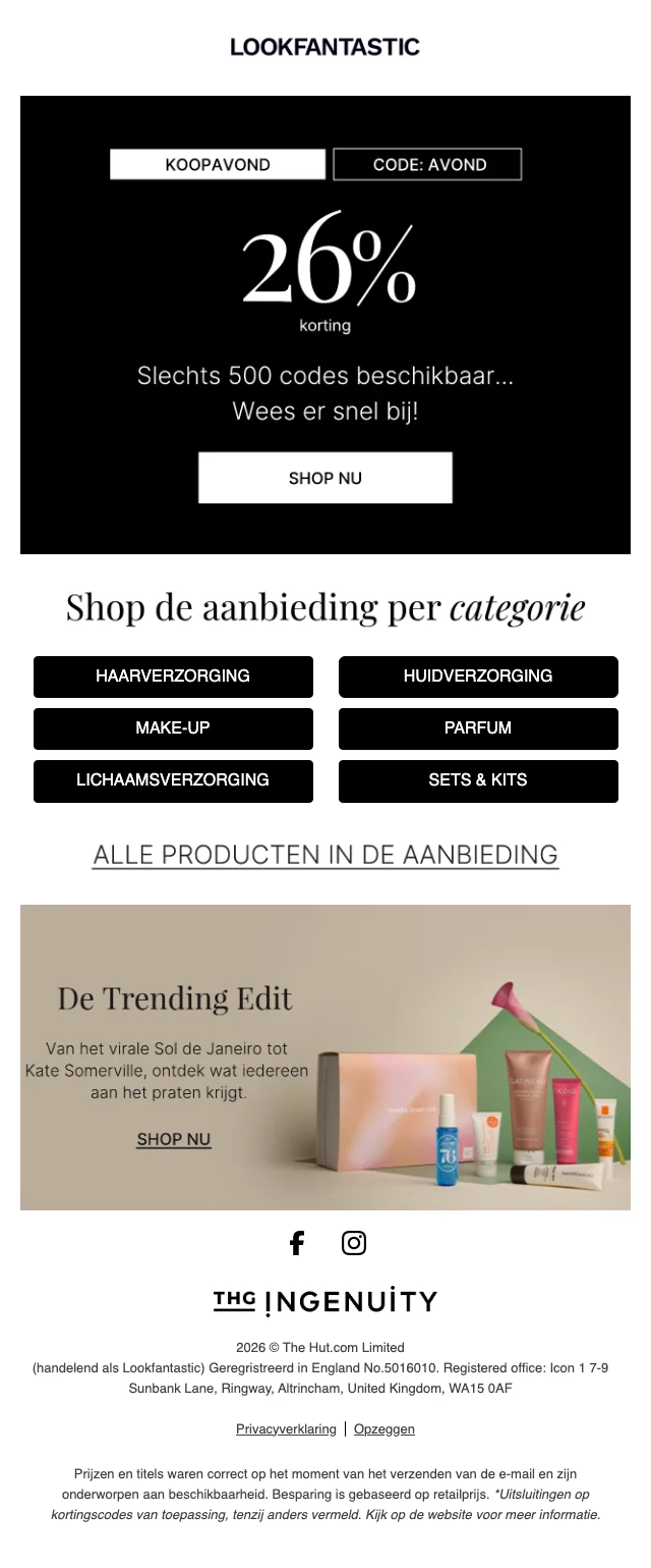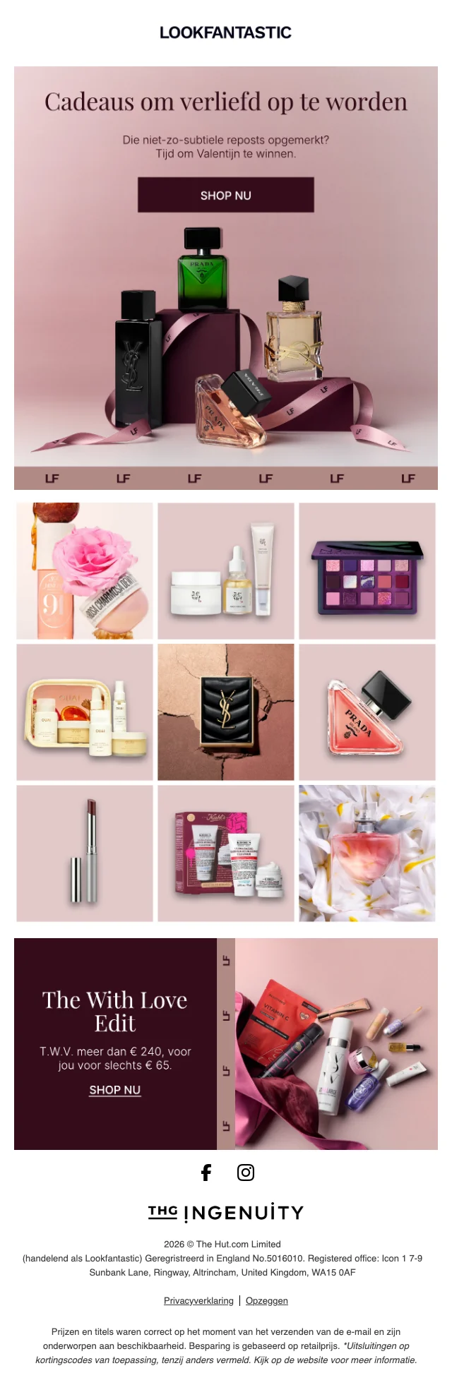 | ZONDAG | LookFantastic valentijnsuitverkoop 30% korting op beautyproducten |
