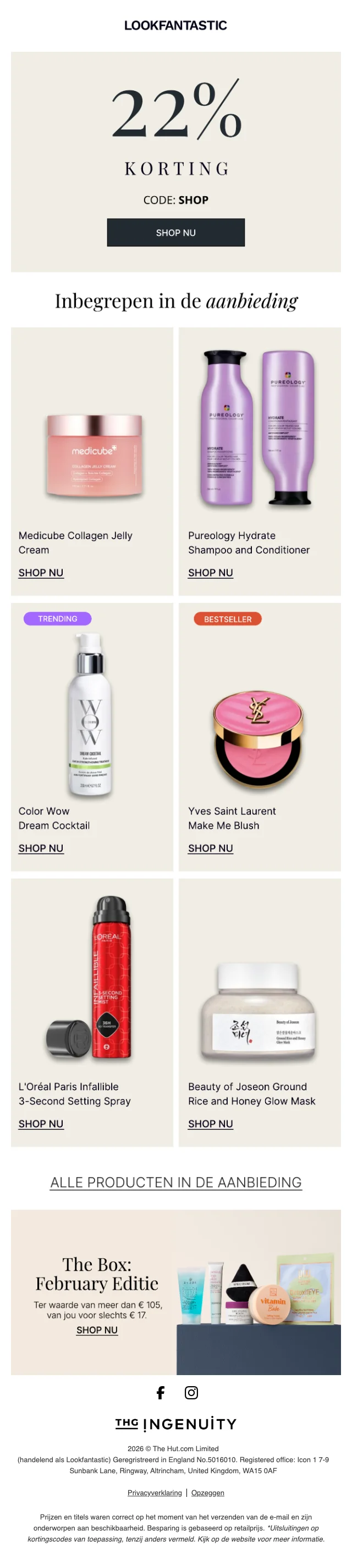 Wij controleren alle nieuwsbrieven van LookFantastic voor u om de beste aanbiedingen te vinden. Bekijk hier de meest recente nieuwsbrieven.