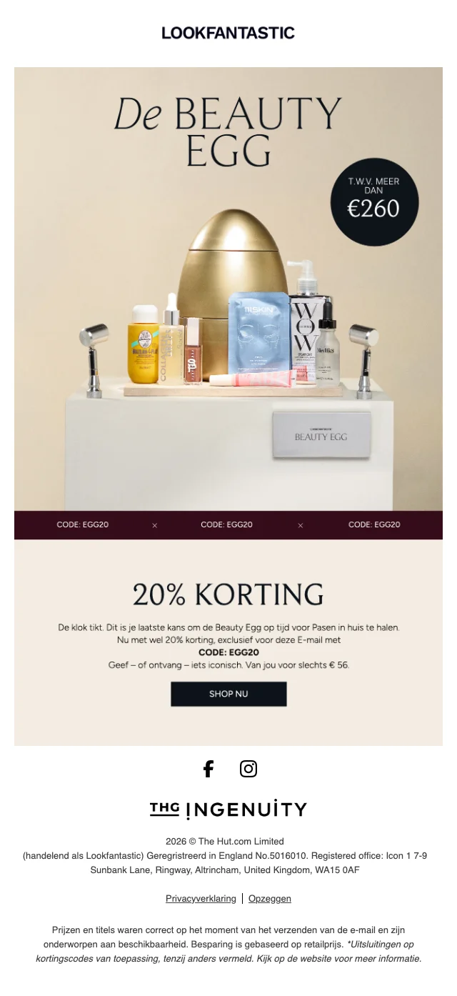| EGG5 | LookFantastic paasaanbieding: €5 korting op Beauty Egg |