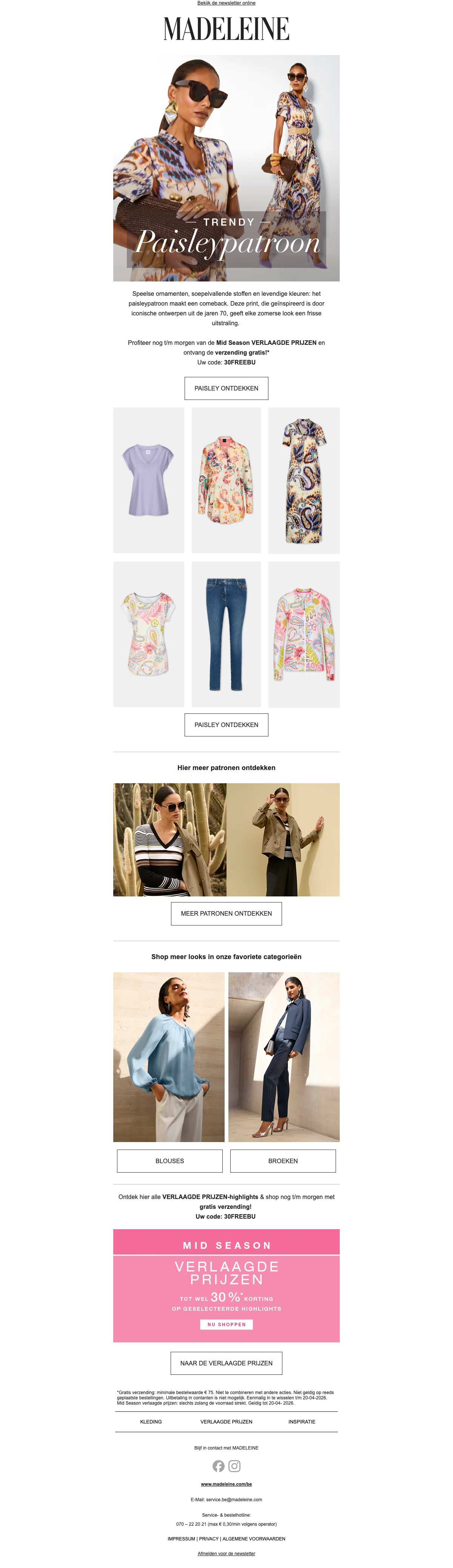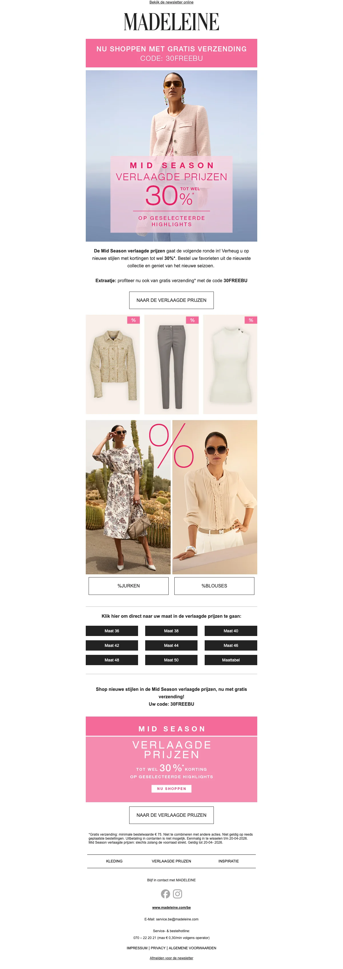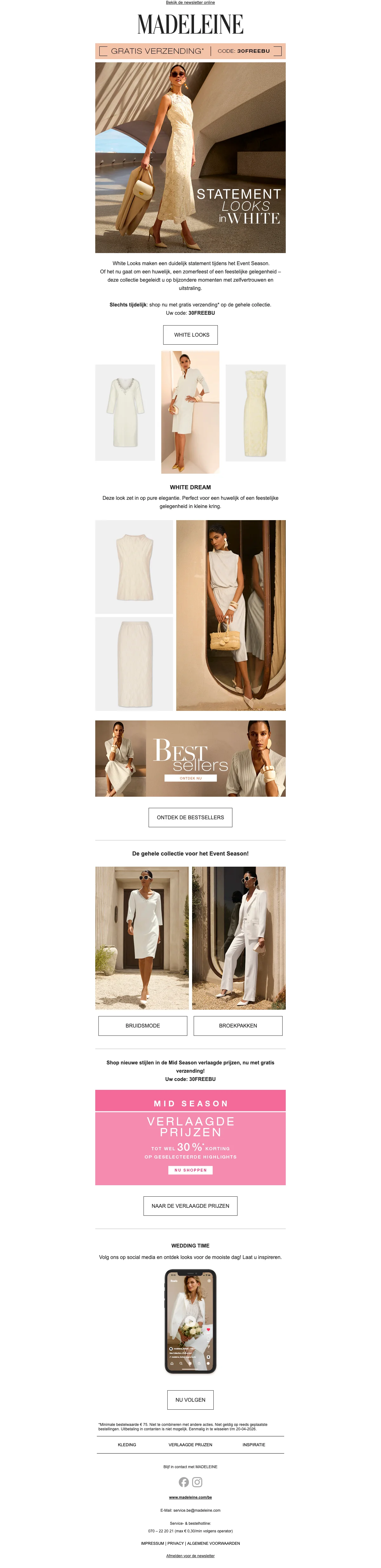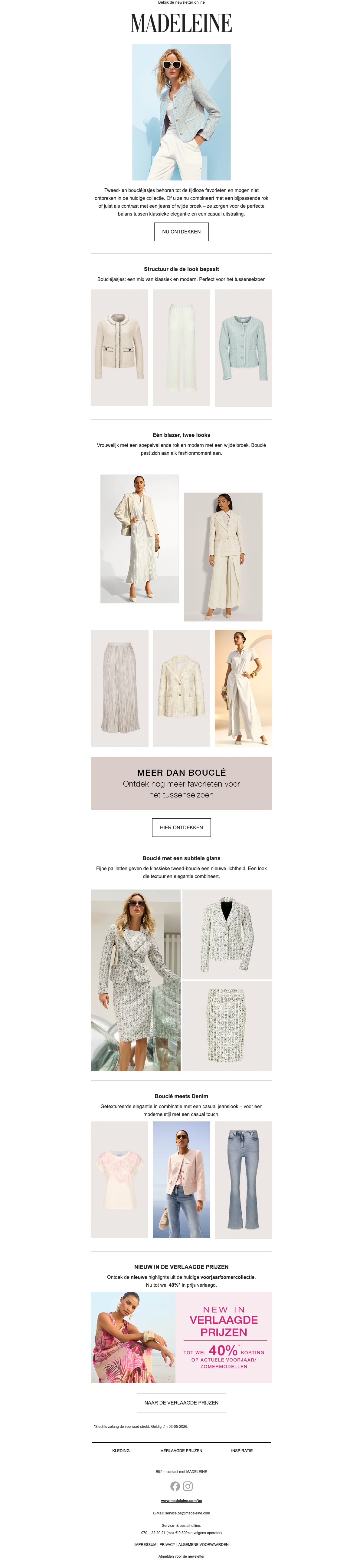In de webshop van MADELEINE kun jij terecht voor exclusieve damesmode uit het hoogste kwaliteitssegment. Wanneer jij je aanmeldt voor de nieuwsbrief ontvang je een korting van € 20 op je bestelling. Shop nu jouw nieuwe outfit en geniet van deze korting!