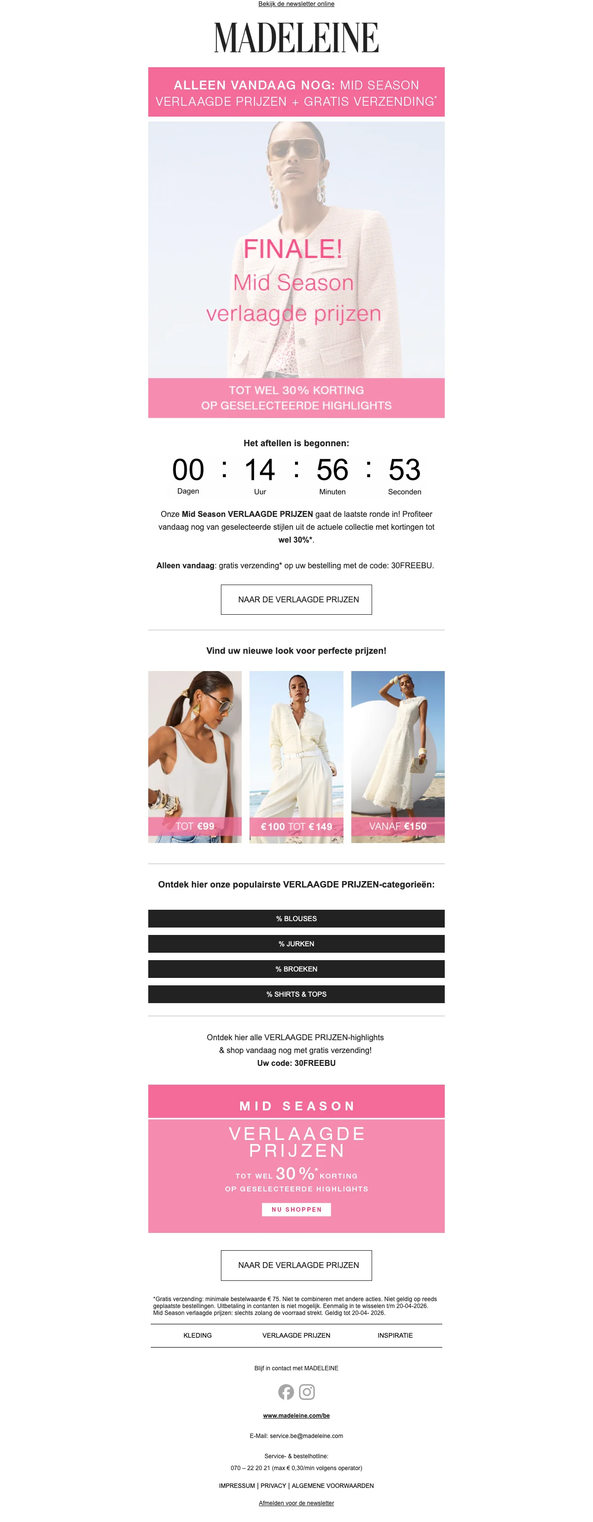 € 20 korting bij inschrijven op de nieuwsbrief van MADELEINE