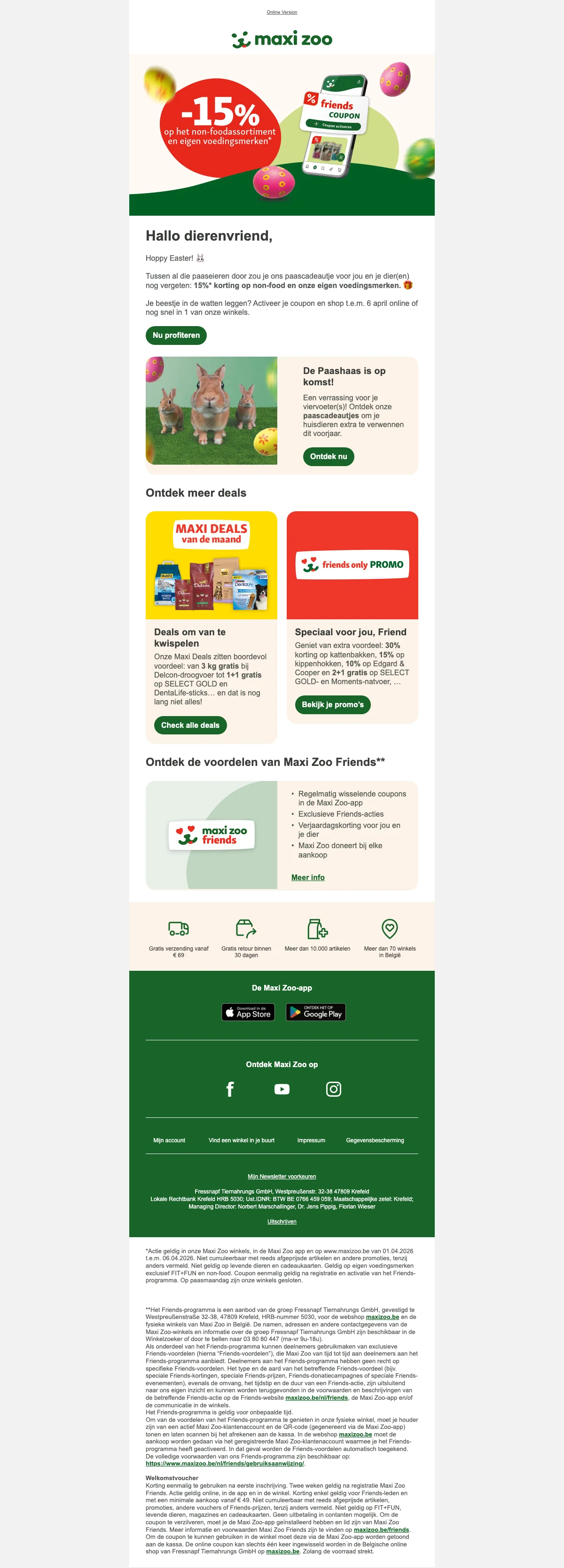 Maxi Zoo pasen 15% korting op eigen voedingsmerken en non-food