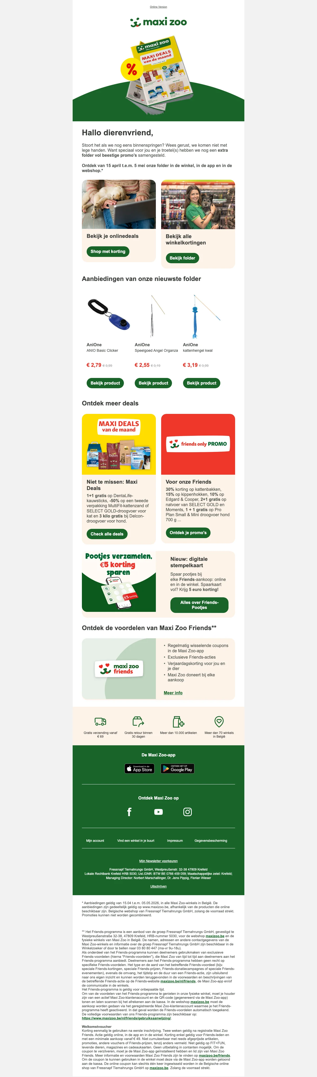 Maxi Zoo actie: download de app en activeer 'Friends' en geniet van 5% korting op alles