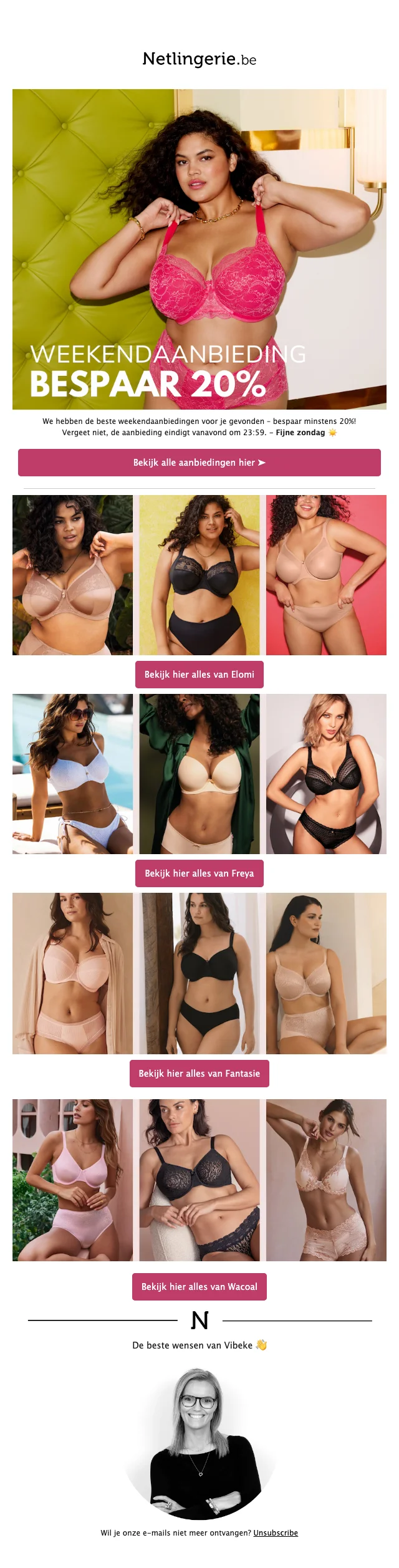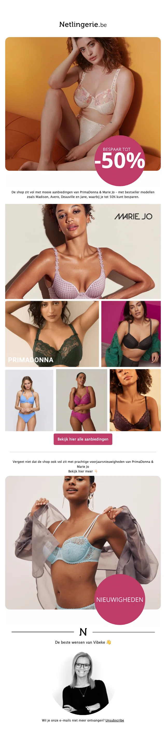 Ontdek prachtige lingerie van PrimaDonna en Marie Jo met een exclusieve 20% korting op niet-afgeprijsde artikelen. Haal je favoriete stukken in huis en geniet van luxe en comfort. Kijk snel voordat je favoriete model of maat is uitverkocht!