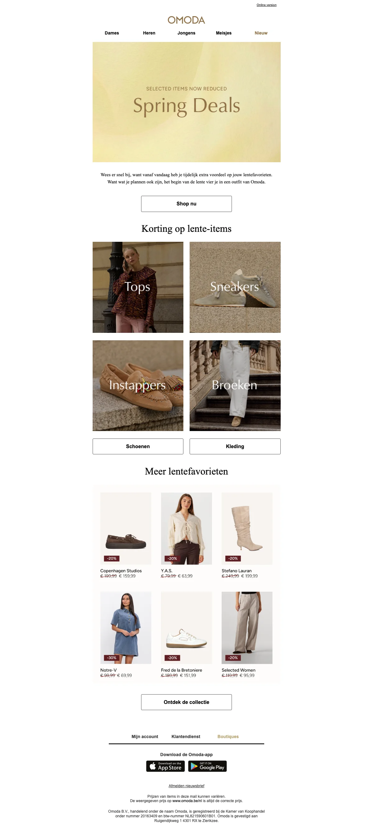 In de solden shop je bij Omoda altijd voor aantrekkelijke prijzen. Een paar stoere boots scoren voor een bodemprijsje? Of ben je op zoek naar in prijs verlaagde sneakers? Bij Omoda vind je het. De Sale vindt bij Omoda ook plaats buiten de solden periode. Hou de webshop daarom goed in de gaten! Je kan je bijvoorbeeld inschrijven voor de Omoda nieuwsbrief, dan weet je zeker dat je niets mist.