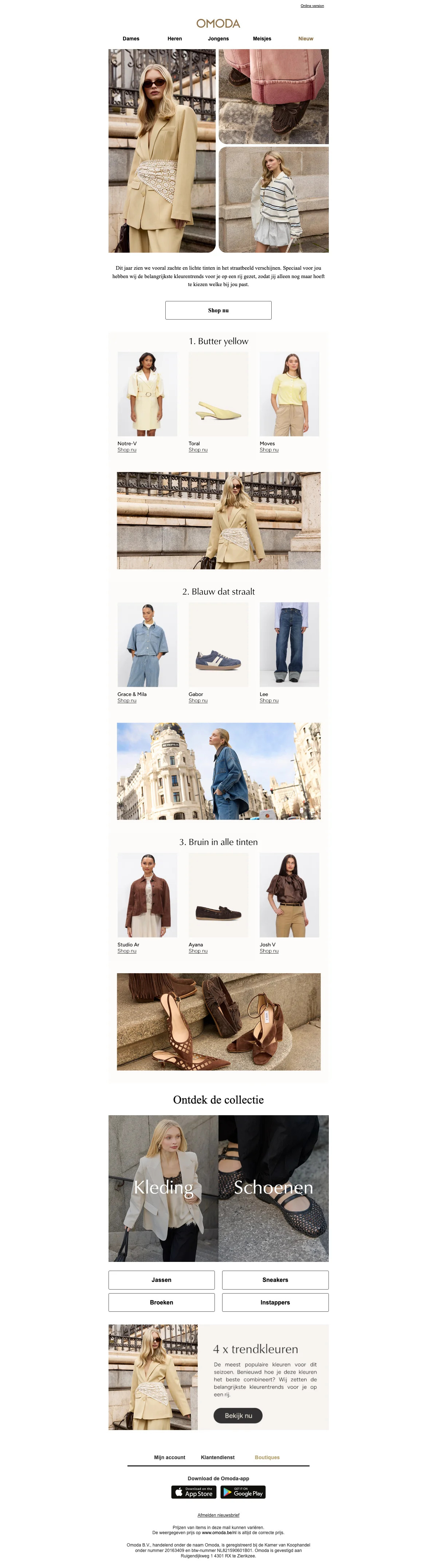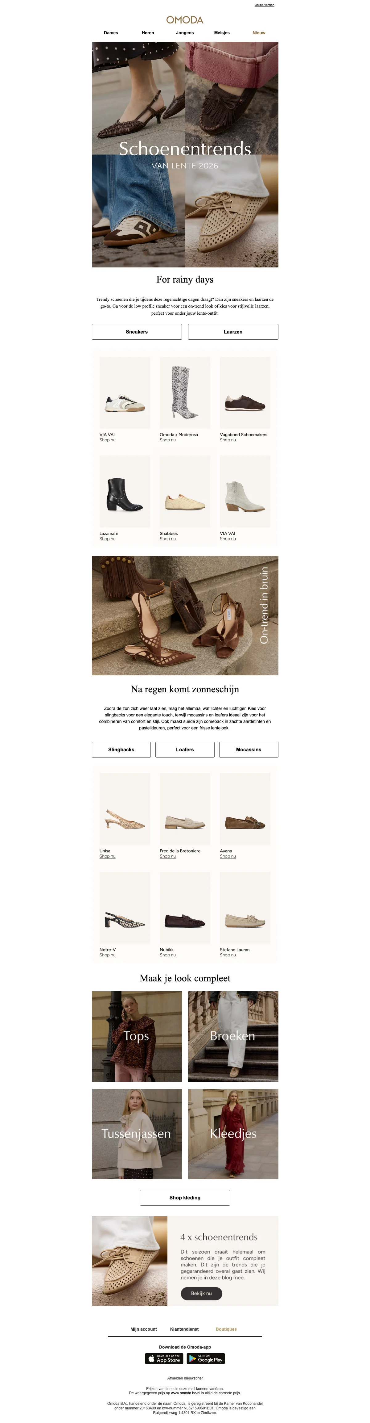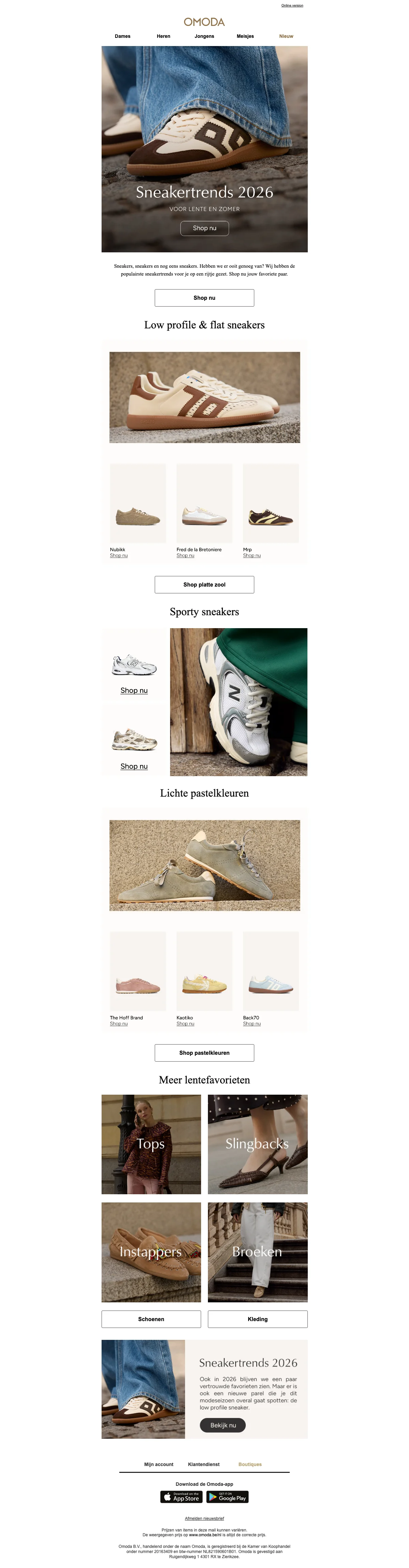 Het is Omoda's missie om jou te voorzien van trendy merkschoenen. Het gevarieerde aanbod is erg ruim en je vindt bij Omoda modieus schoeisel in verschillende prijsklassen. Sinds het jaar 2000 is Omoda een herkenbare speler op de schoenenmarkt. Het unieke concept van de winkel; een luxe en strakke uitstraling, vind je ook terug in de webshop. Zo wordt het voor jou nog makkelijker en overzichtelijker gemaakt om het assortiment te checken. De webshop is al sinds 2007 actief en werd kort na de Nederlandse lancering uitgebreid naar België. Duitsland en Frankrijk. Je vindt online dezelfde grote collectie als in de fysieke winkels.