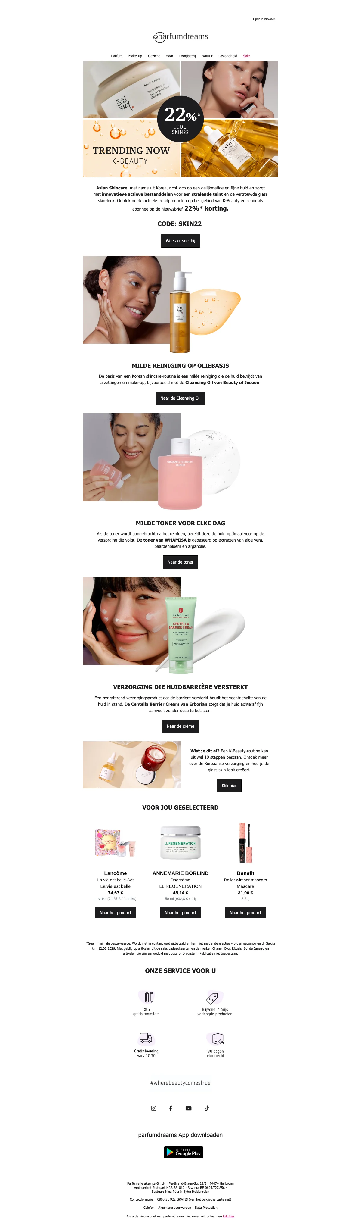 Ontvang direct 22% korting op geselecteerde promo-artikelen, plus een extra 3% korting voor nieuwsbriefabonnees. De 22% is al in de prijs verwerkt; de extra 3% geldt zonder minimale bestelwaarde. Let op: niet geldig op bepaalde merken en cadeaukaarten.