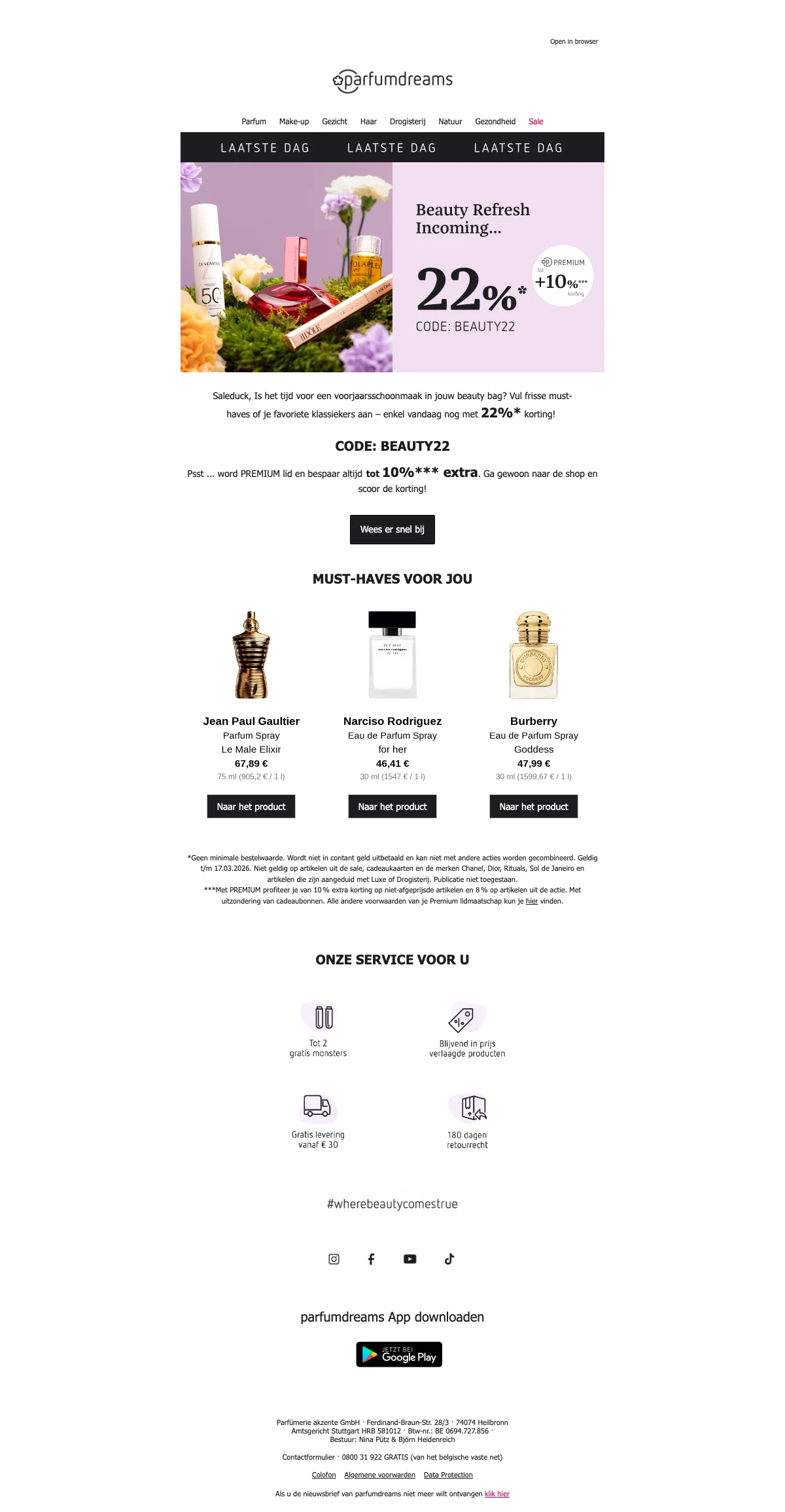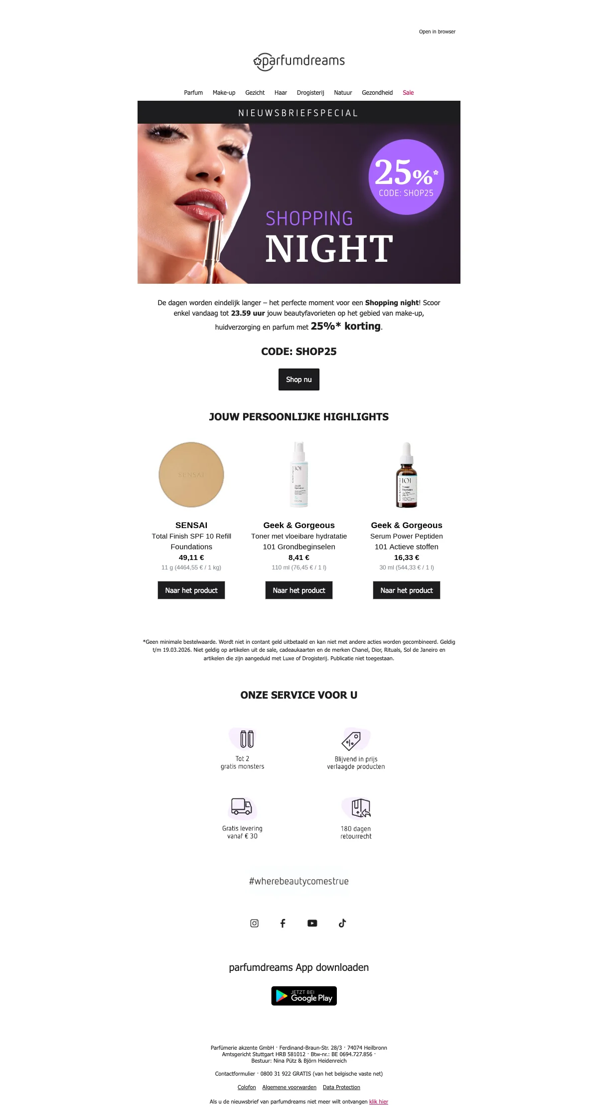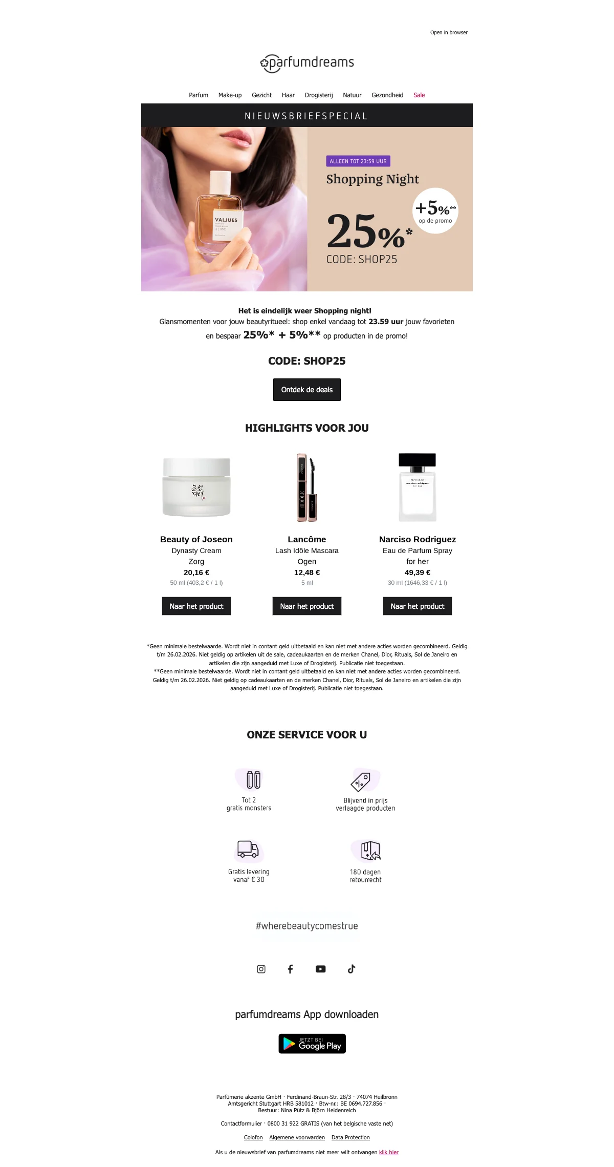 Parfumdreams shopping night: 25% + 5% korting op geselecteerde beautyproducten