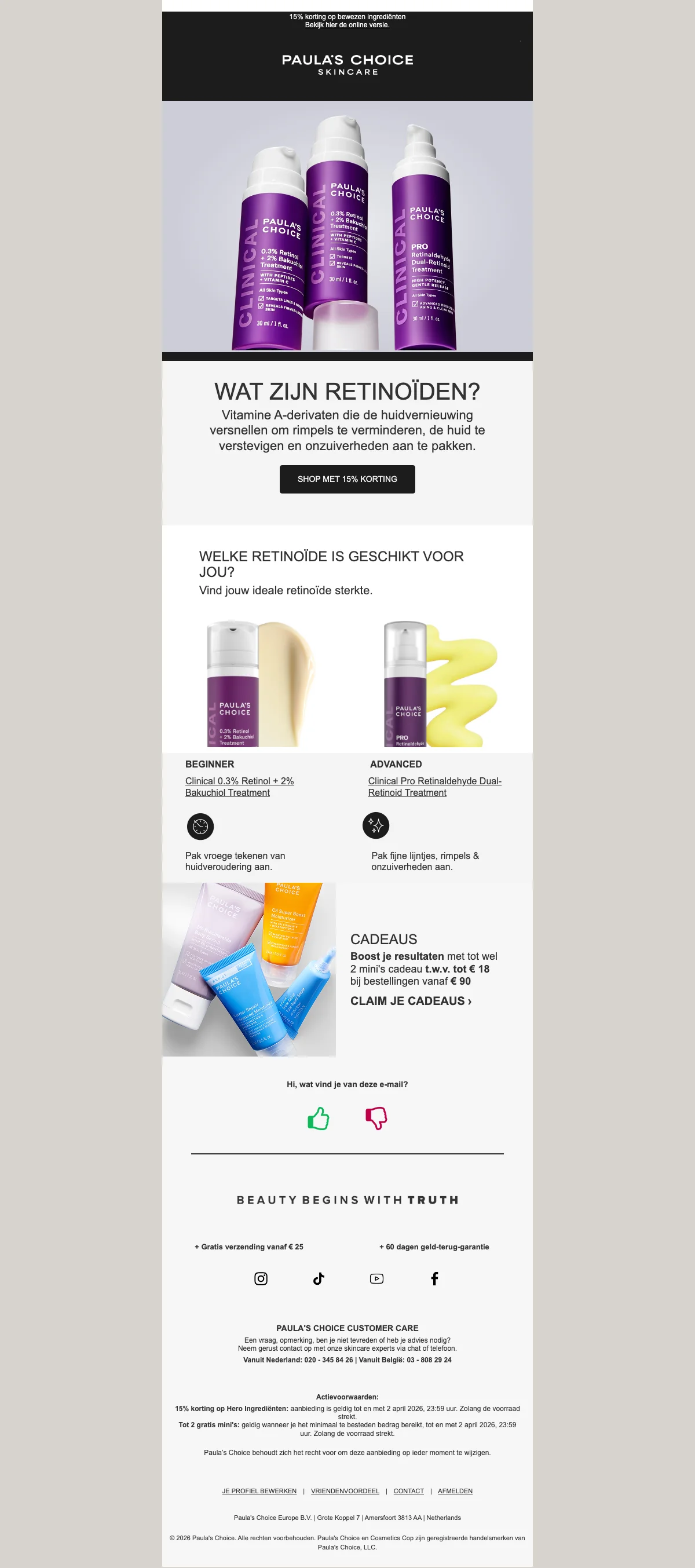 Bij Paula's Choice kun jij terecht voor je favoriete verzorgingsproducten. Daarnaast zijn er regelmatig producten in de aanbieding in de webshop. De kortingen kunnen dan soms oplopen tot wel 20%!