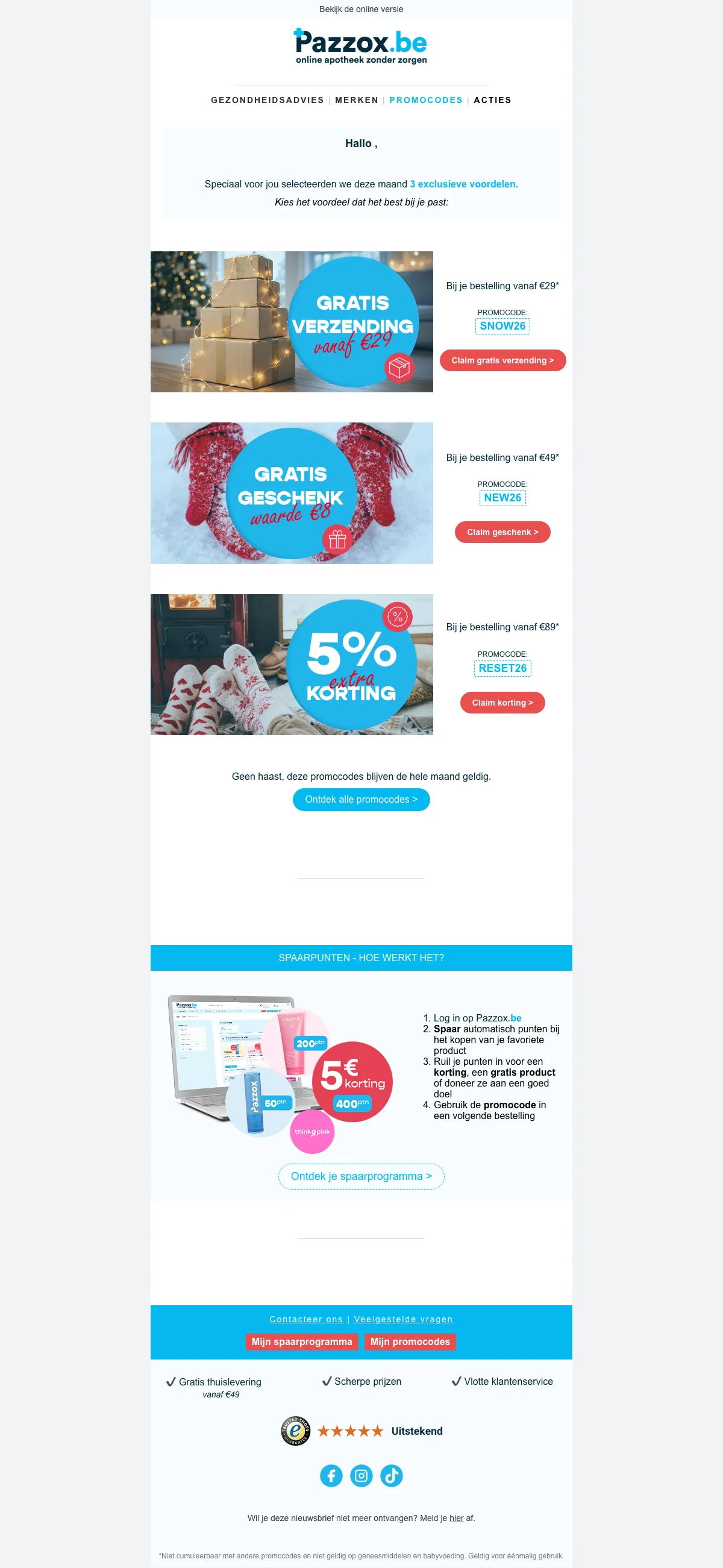 | WELKOM5 | Bespaar €5 op je eerste aankoop met deze Pazzox kortingscode |