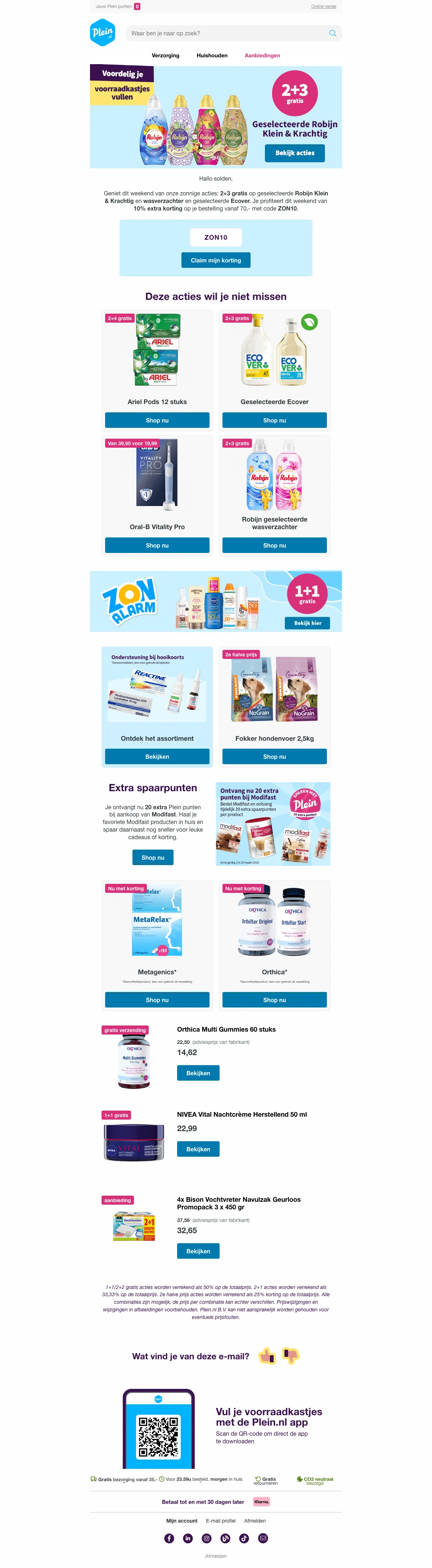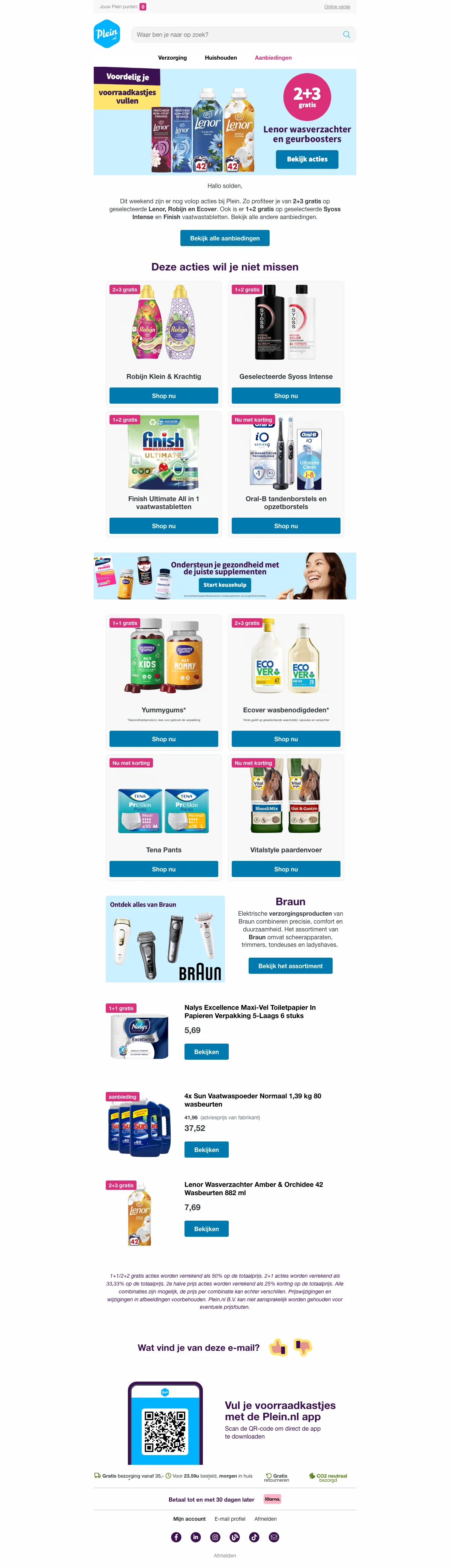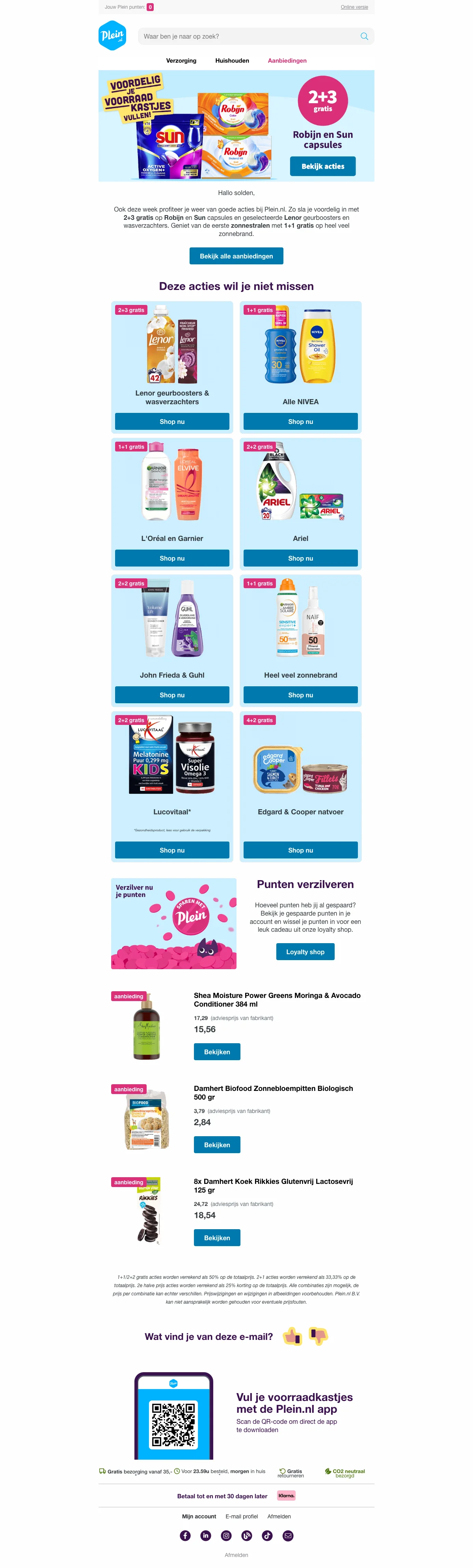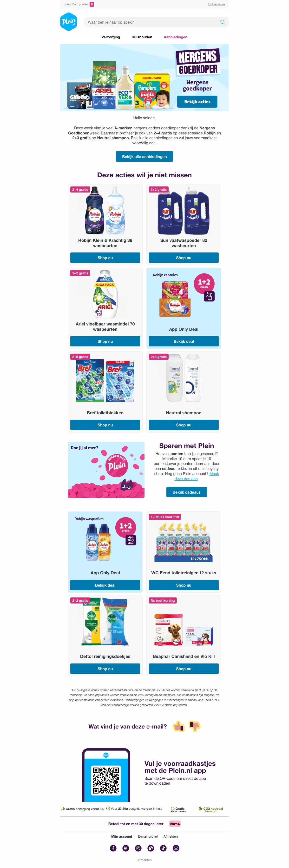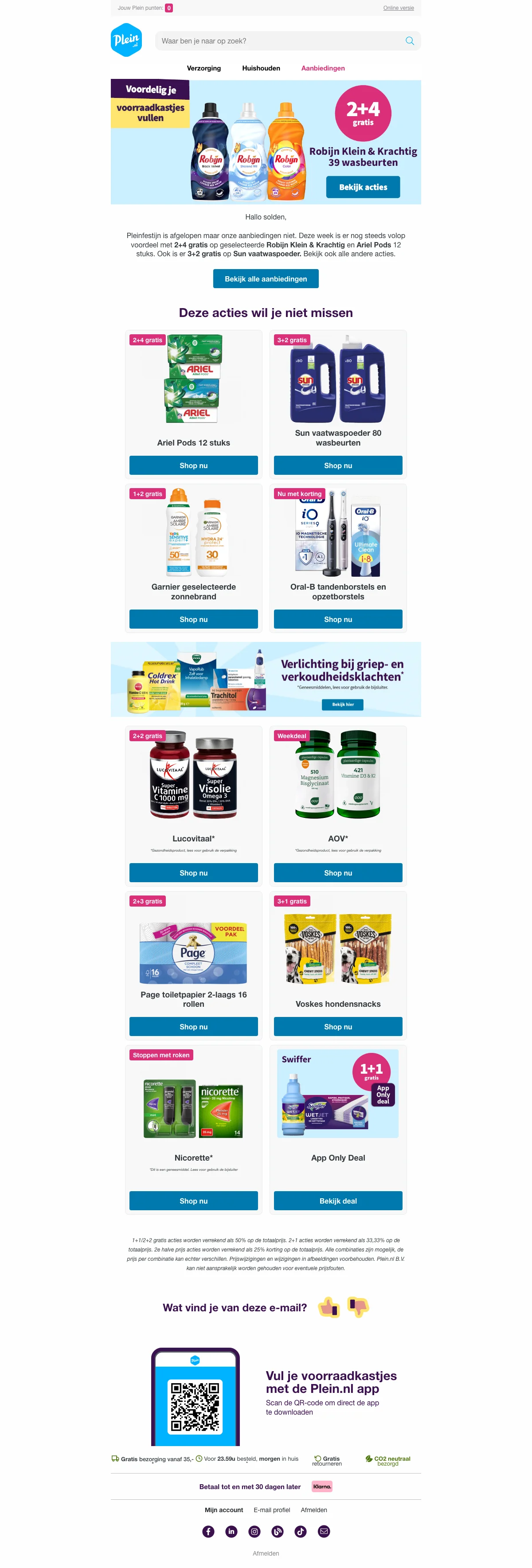 We monitoren Plein aanbiedingen continu via de officiële website, partnernetwerken en nieuwsbrieven van de webshop. Nieuwe acties worden automatisch en handmatig gecontroleerd op geldigheid.