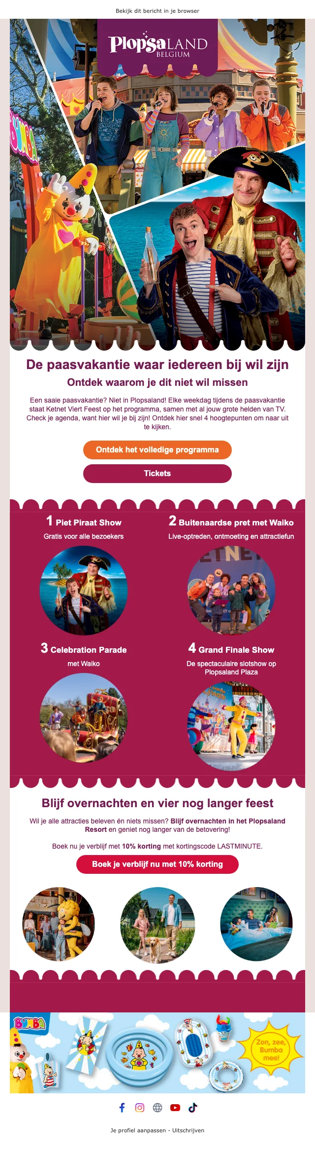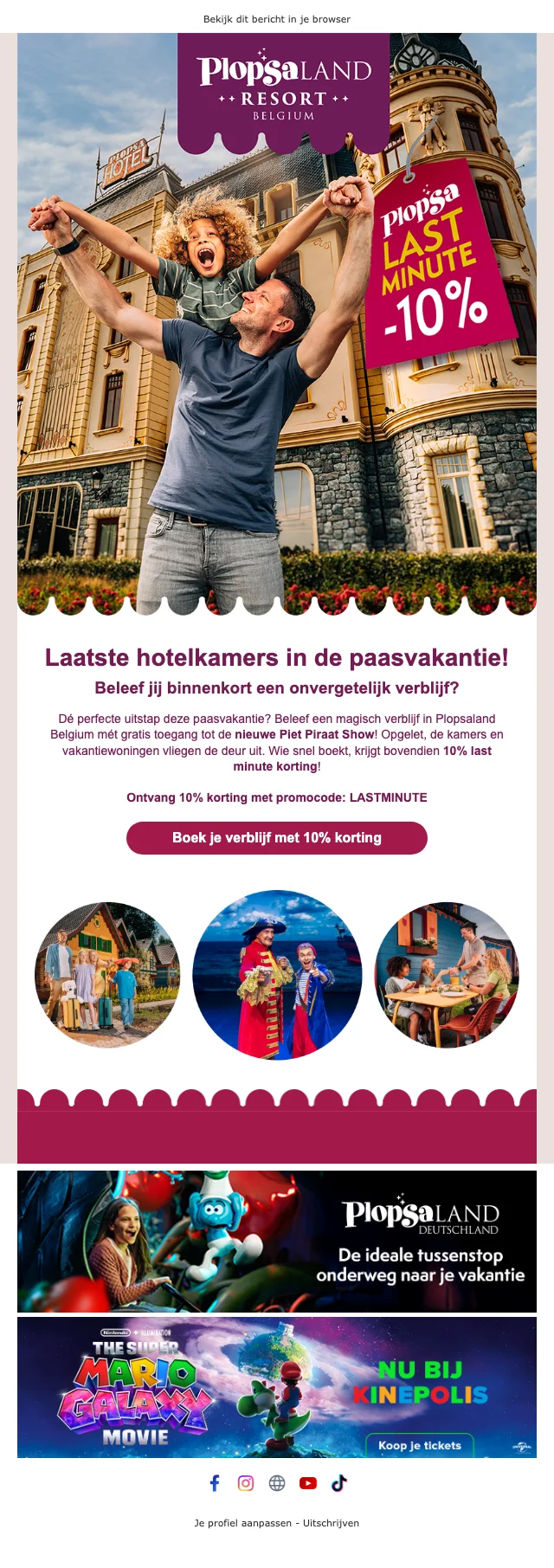 | LASTMINUTE | Plopsaland resort paasvakantie 10% korting op overnachting met code |