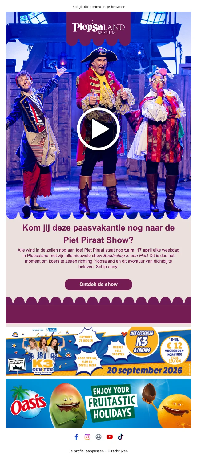 Plopsaland Piet Piraat show gratis tijdens paasvakantie, VIP-optie