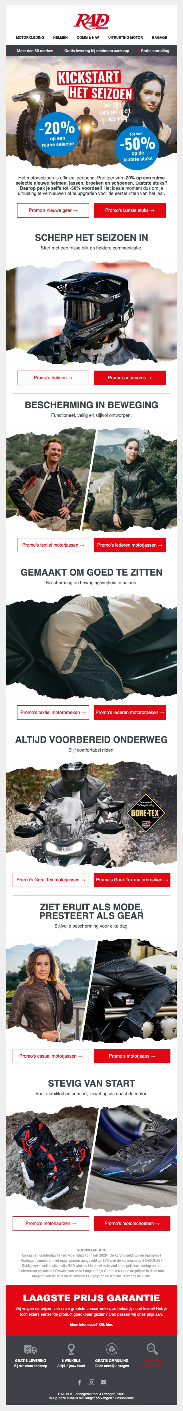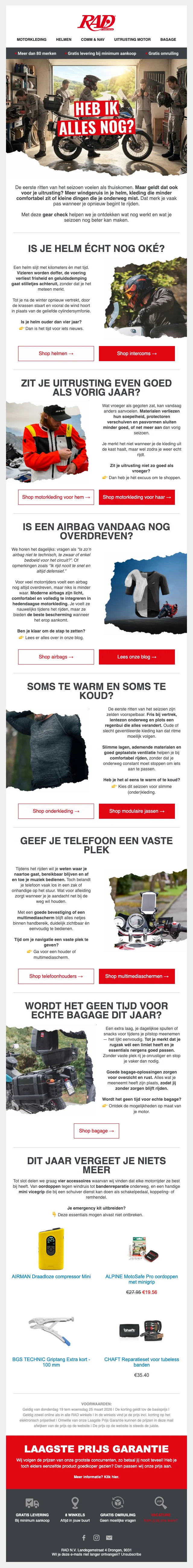 RAD motorseizoen korting tot 50% op helmen, jassen en broeken