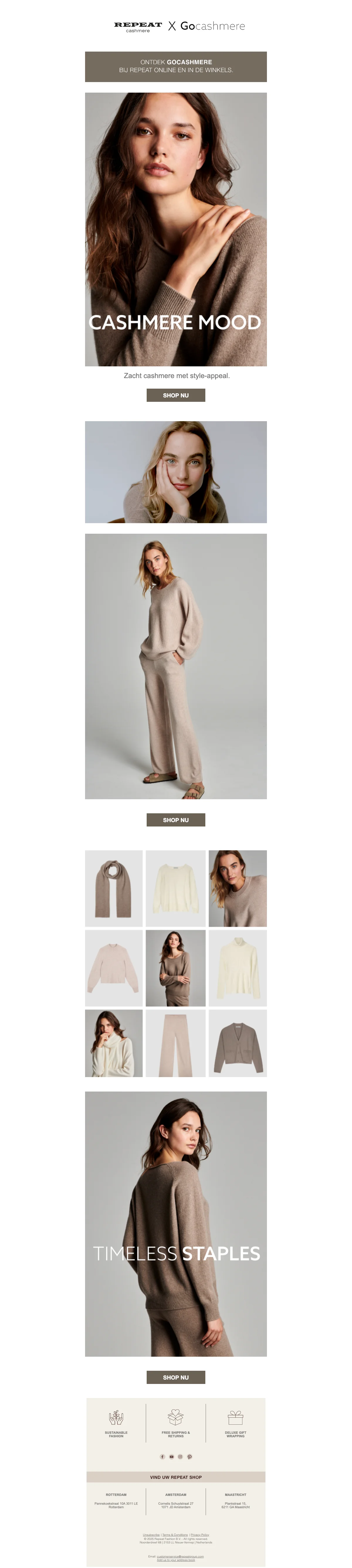 U hoeft zich geen zorgen te maken over bijkomende verzendkosten bij Repeat Cashmere. U betaalt nu namelijk geen verzendkosten bij deze prachtige webshop. Neem snel een kijkje op deze webshop voor mooie kledij!