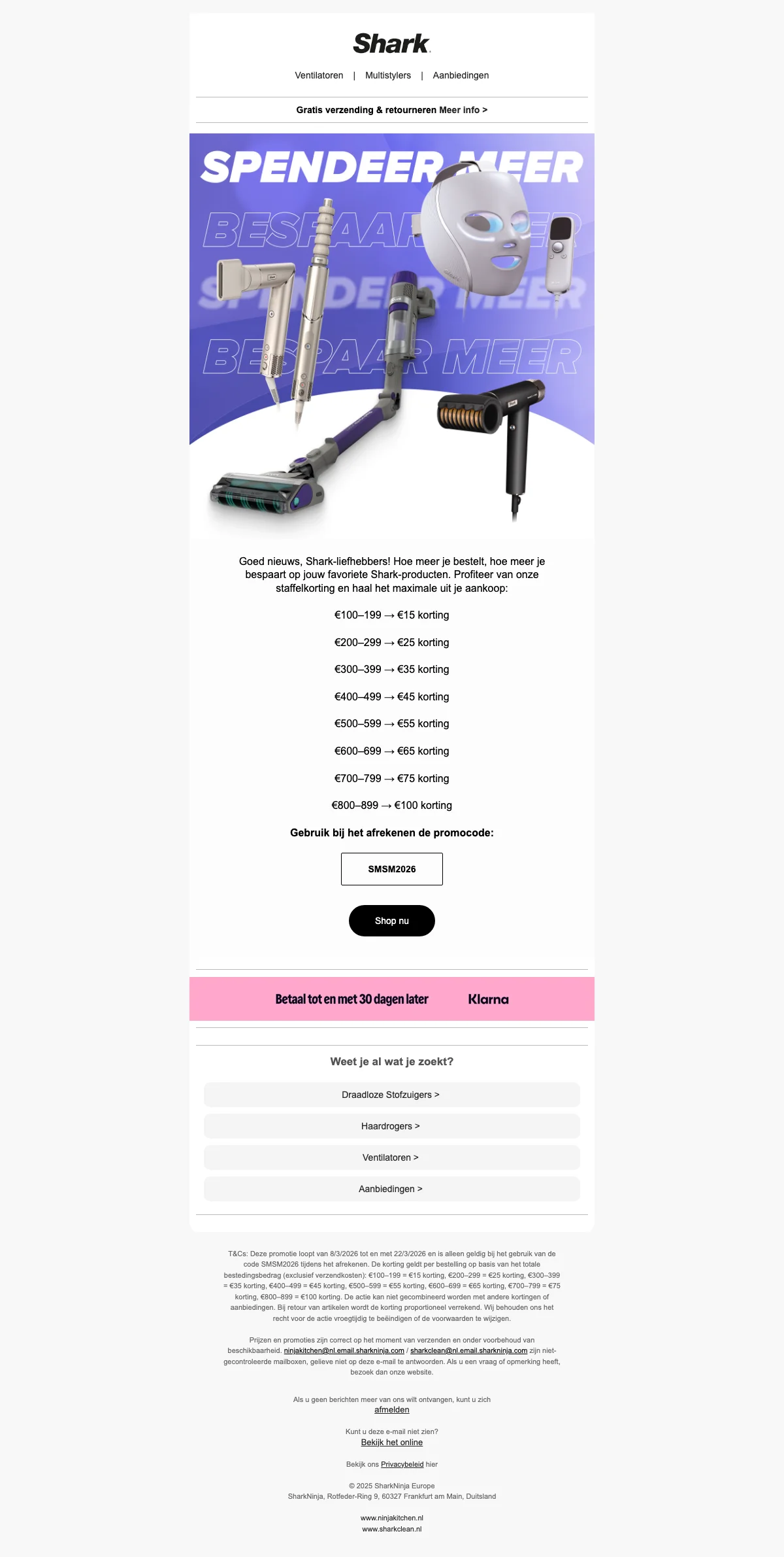 Ervaar de ultieme vrijheid tijdens het schoonmaken zonder snoer. Maak gebruik van de krachtige zuigkracht en slimme technologie van Shark’s draadloze stofzuigers met deze geweldige korting. Het is tijd om schoonmaken moeiteloos en snel te maken!