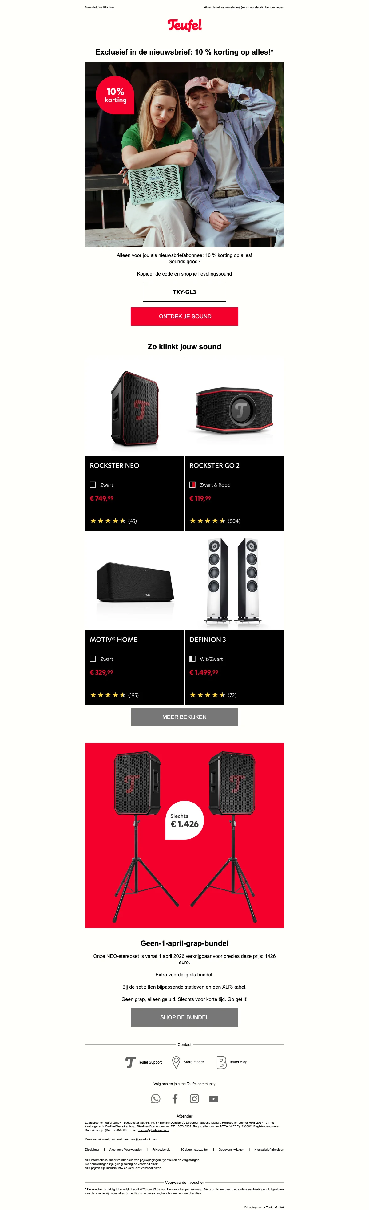 Korting bij Teufel online - april 2026