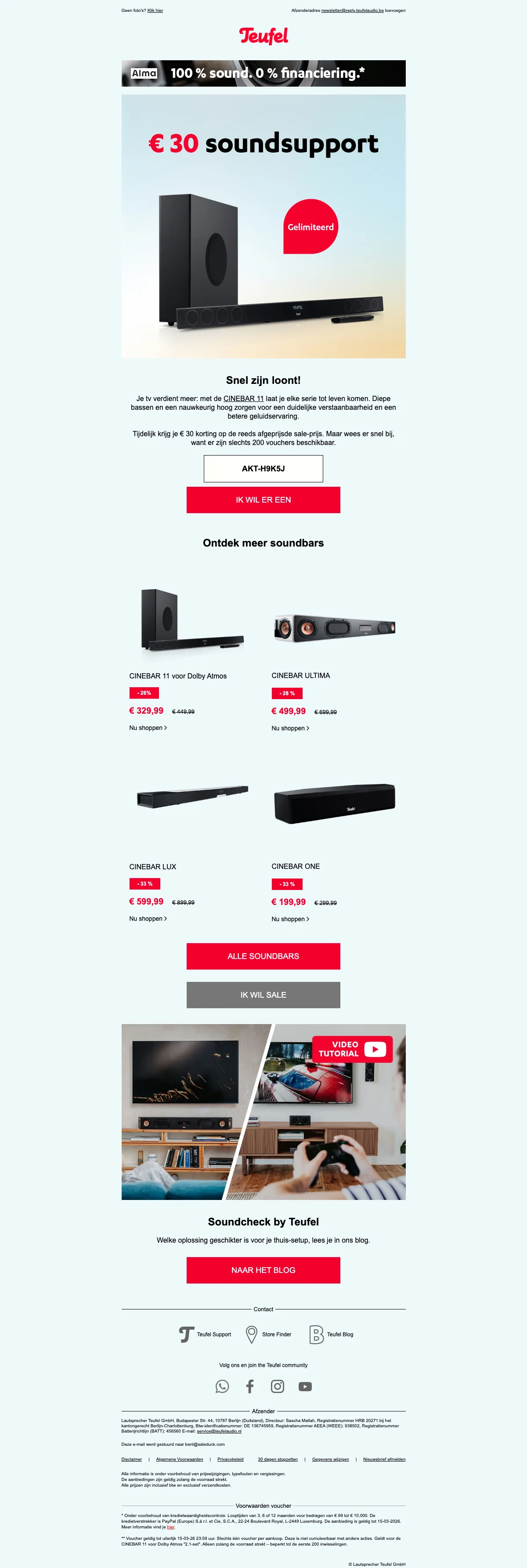 Teufel soundbar sale €30 korting op CINEBAR 11 – beperkte vouchers