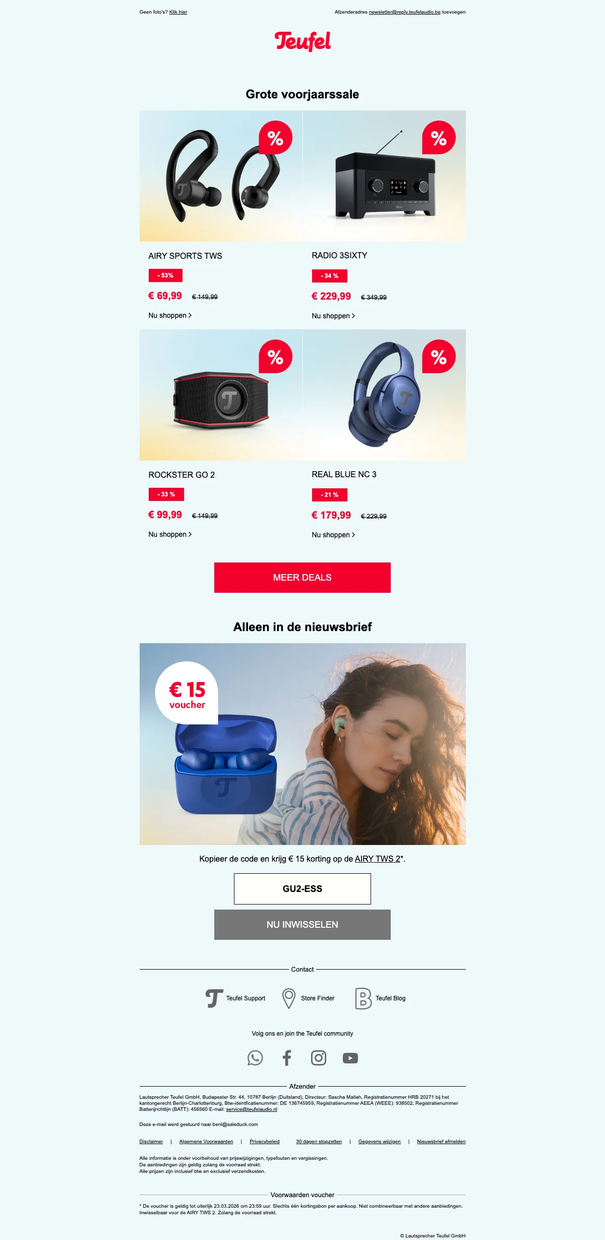 We monitoren Teufel aanbiedingen continu via de officiële website, partnernetwerken en nieuwsbrieven van de webshop. Nieuwe acties worden automatisch en handmatig gecontroleerd op geldigheid.