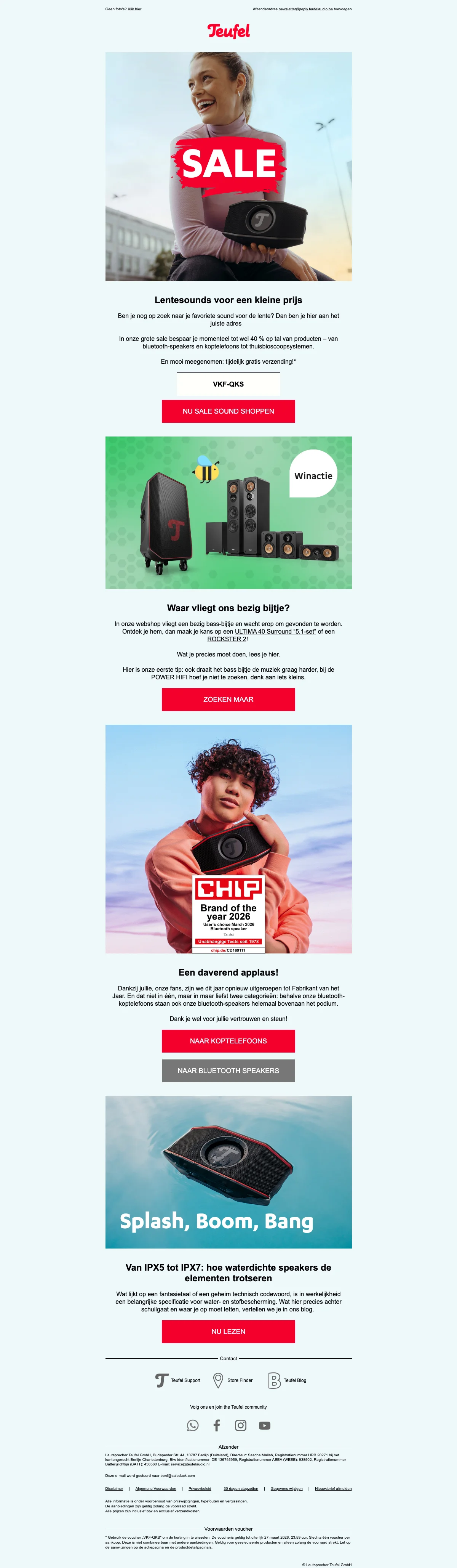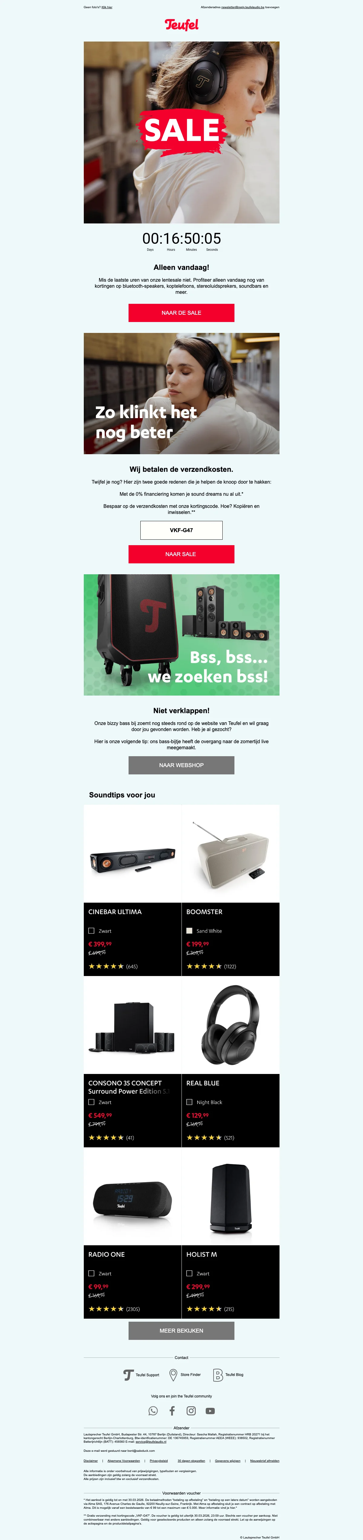 Teufel lentesale: gratis verzending met kortingscode VKF-G47