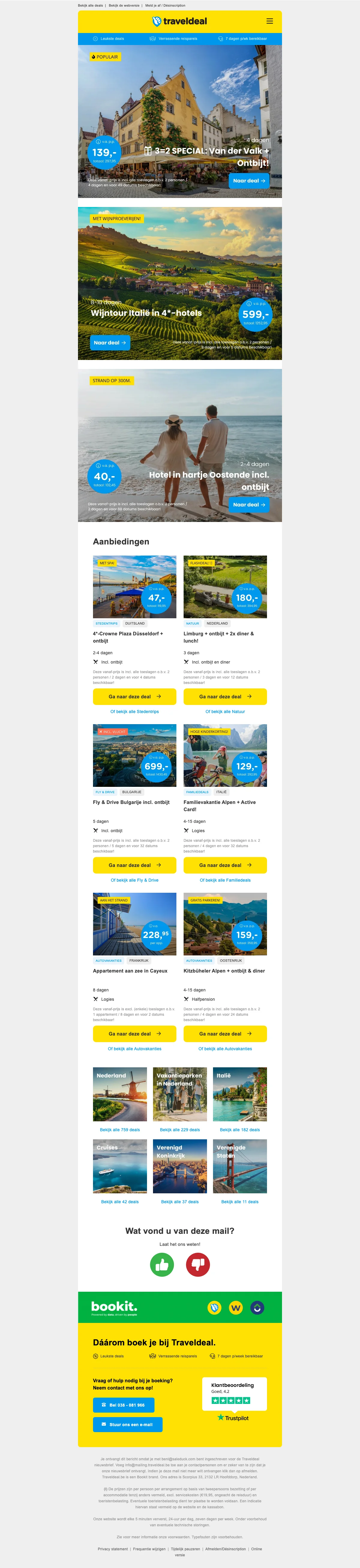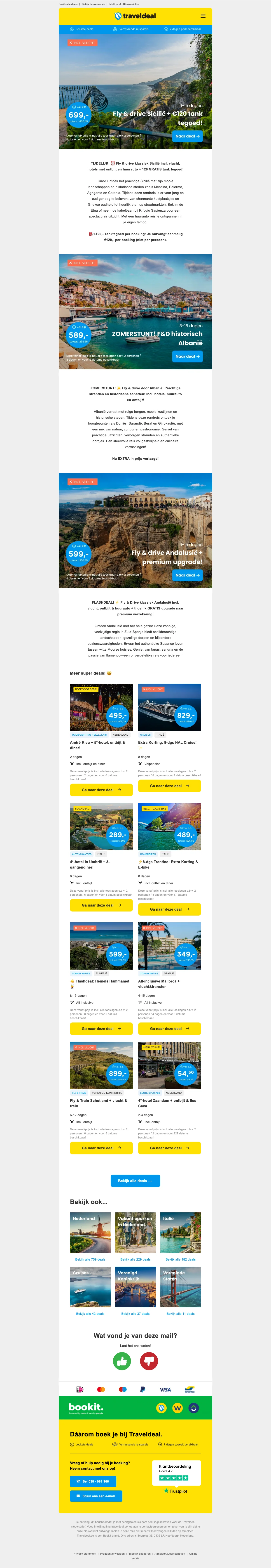 Traveldeal actie: schrijf je in voor de nieuwsbrief en geniet van exclusieve aanbiedingen