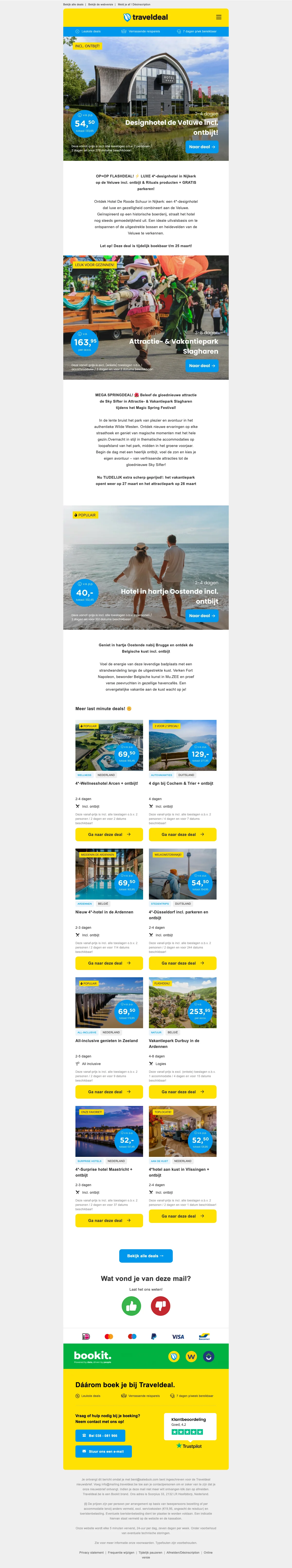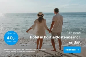 Ontdek stedentrips en kustdeals vanaf €49,50 p.p.; ideaal voor korte weekendjes weg. Familiekamers beschikbaar en kind tot 11 jaar verblijft gratis, vaak inclusief ontbijt. Vanaf-prijs geldt bij 2 personen en is inclusief toeslagen voor geselecteerde datums.