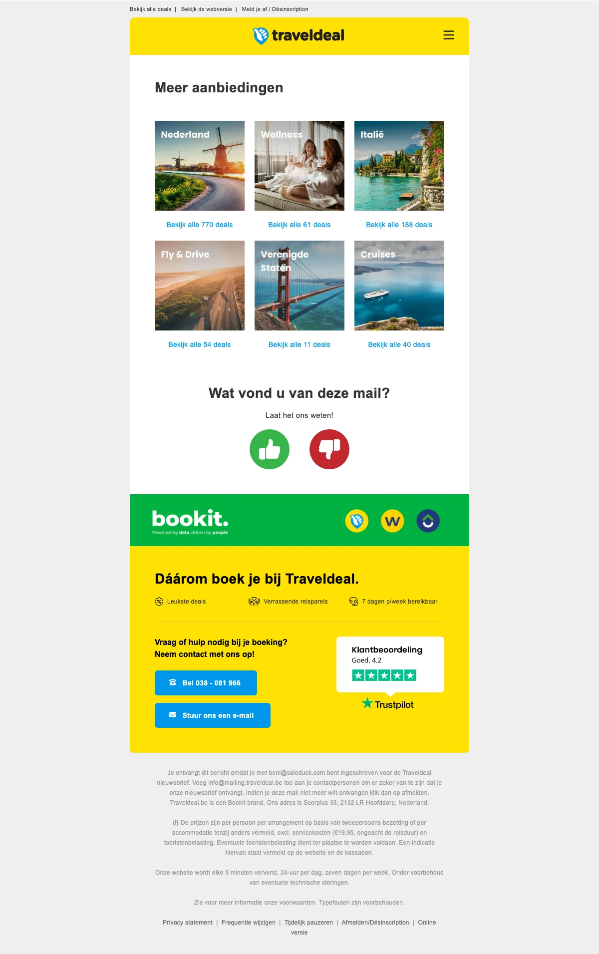 Saleduck is een onafhankelijke, door advertenties ondersteunde service voor het vergelijken van coupons. De aanbiedingen die op deze site verschijnen zijn van bedrijven waarvan Saleduck een vergoeding ontvangt. Deze vergoeding kan van invloed zijn op hoe en waar kortingsbonnen of producten op deze site verschijnen, inclusief bijvoorbeeld de volgorde waarin ze in aanbiedingscategorieën kunnen verschijnen. Saleduck heeft directe contracten met de adverteerders die wij promoten. We publiceren alleen promocodes en actiecodes die we rechtstreeks van de adverteerder krijgen of als de adverteerder deze zelf promoot. We publiceren geen codes van andere websites opnieuw. Saleduck verifieert de codes handmatig voordat ze worden gepubliceerd.
