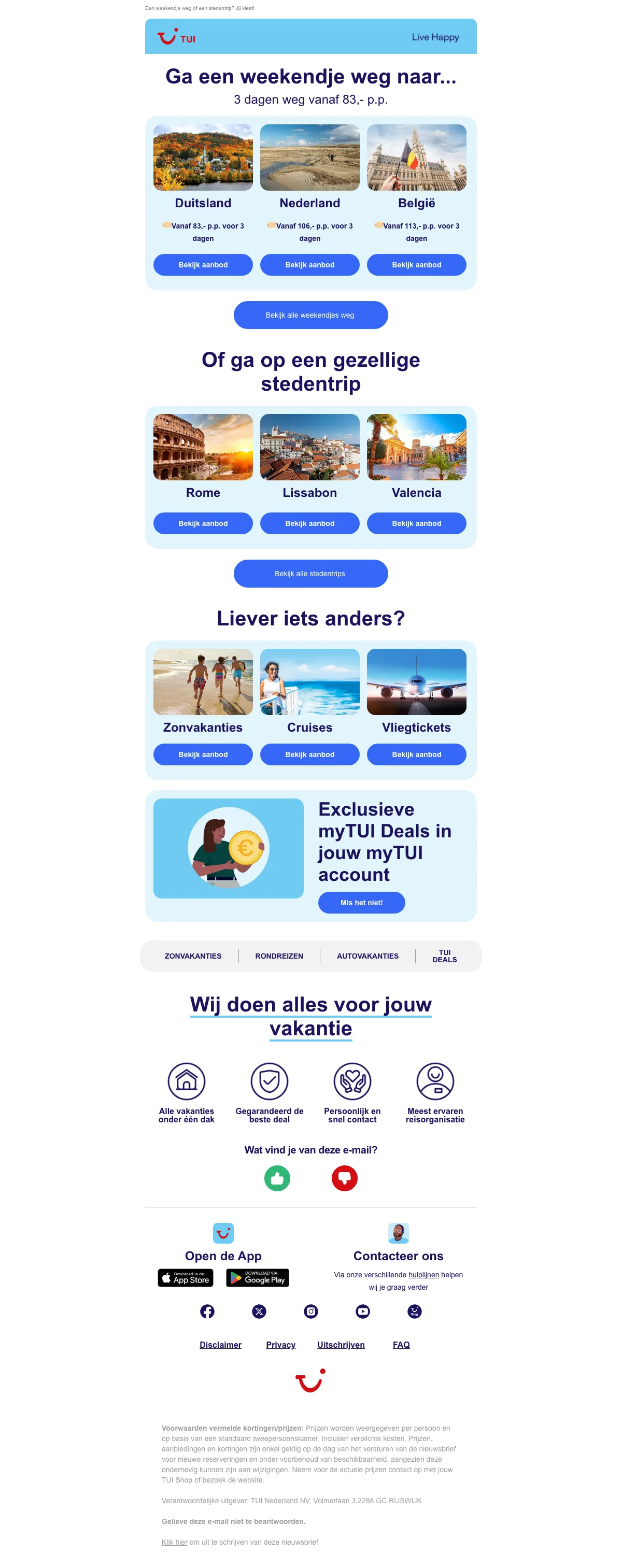 TUI weekendje weg 3 dagen vanaf €62 p.p. in Nederland