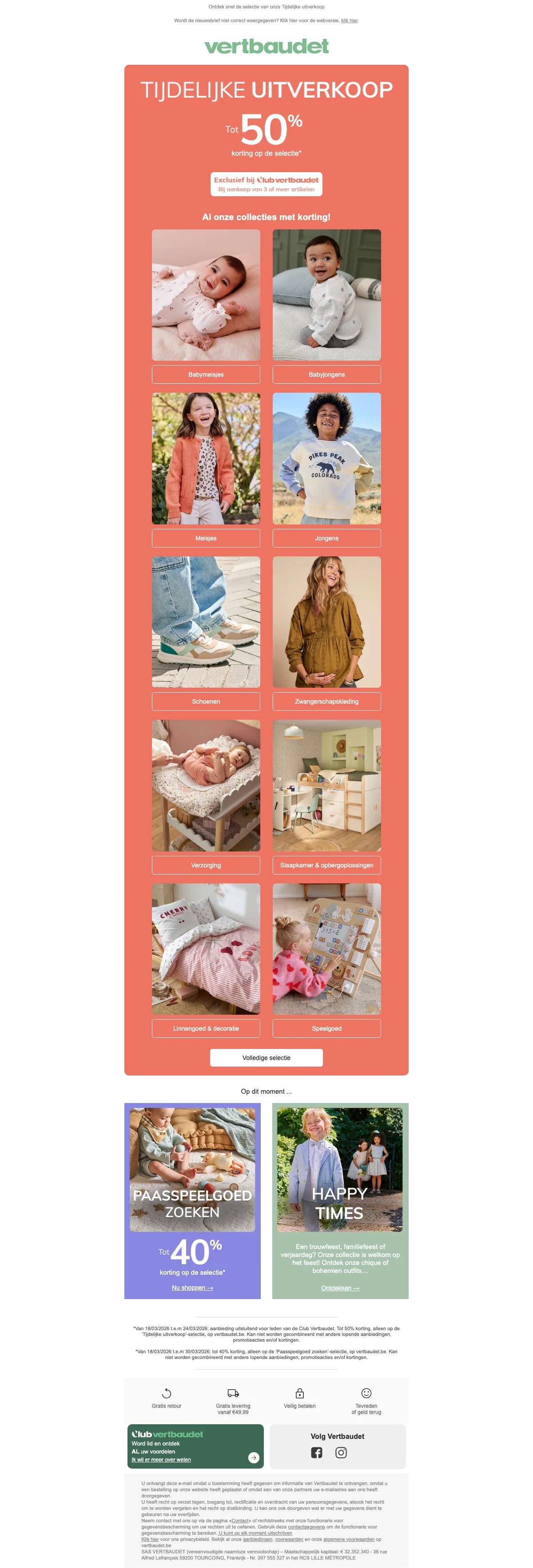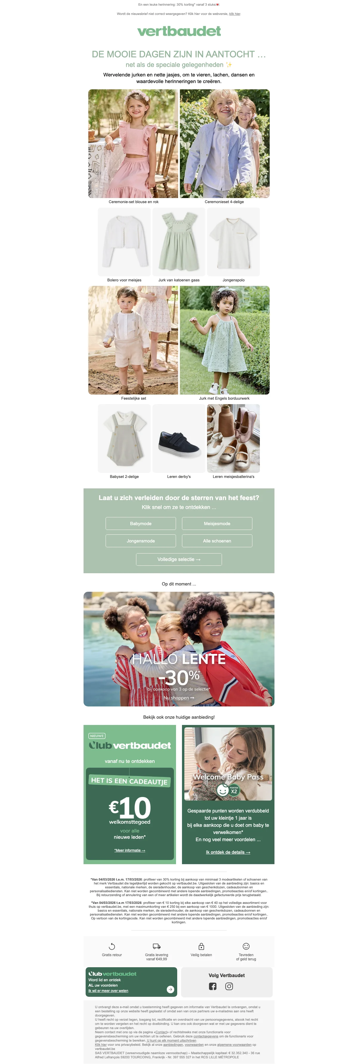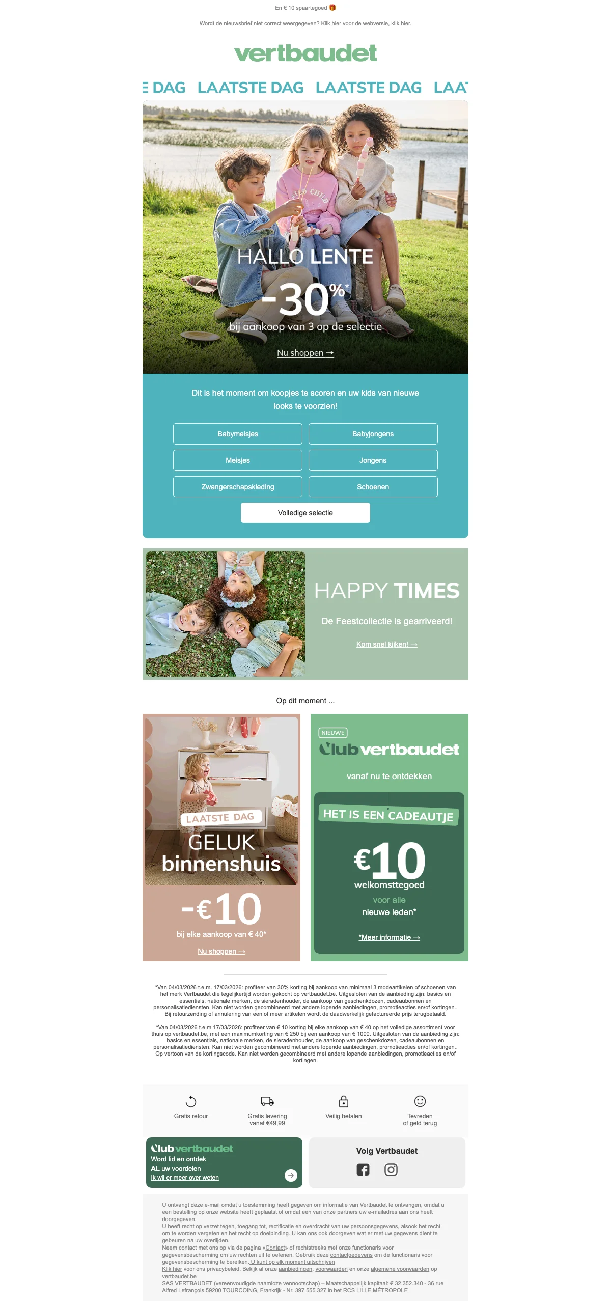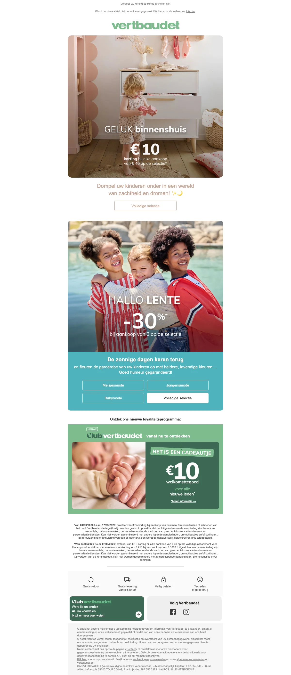 Ontvang €10 korting op je bestelling bij Vertbaudet; de korting wordt direct verrekend bij het afrekenen. Bekijk de actievoorwaarden op de website voor meer details over toepasselijkheid.