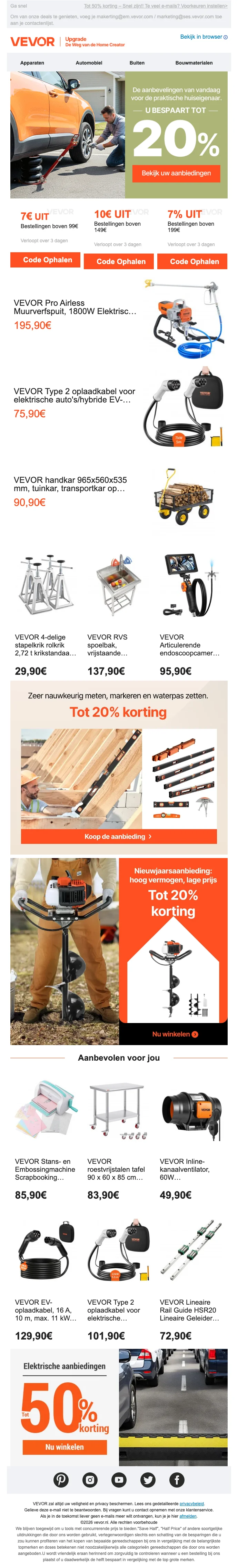 Begin je avontuur met VEVOR en geniet van €5 korting op je eerste aankoop van meer dan €119. Dit is de perfecte kans om hoogwaardige producten te scoren en geld te besparen. Actie is tijdelijk, dus wacht niet te lang!